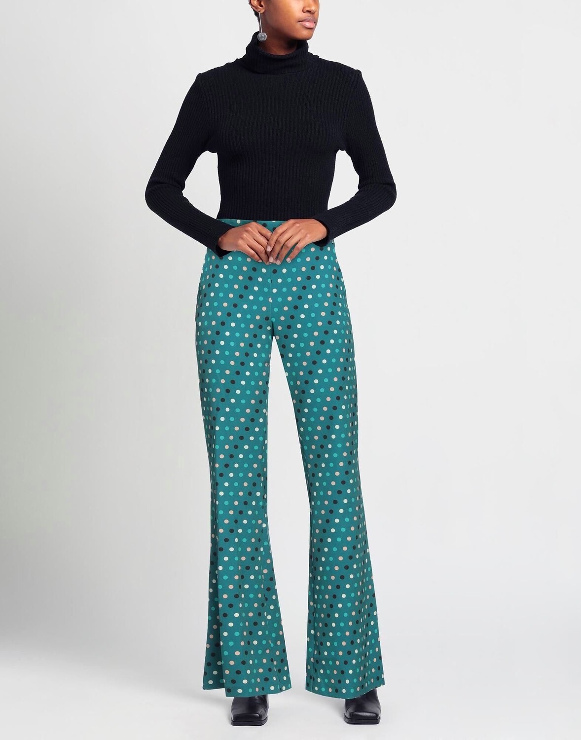 Креп, без аппликаций, в горошек, завышенная талия, расклешенный крой, классический крой, застежка-молния, множество карманов, стрейч, брюки чинос