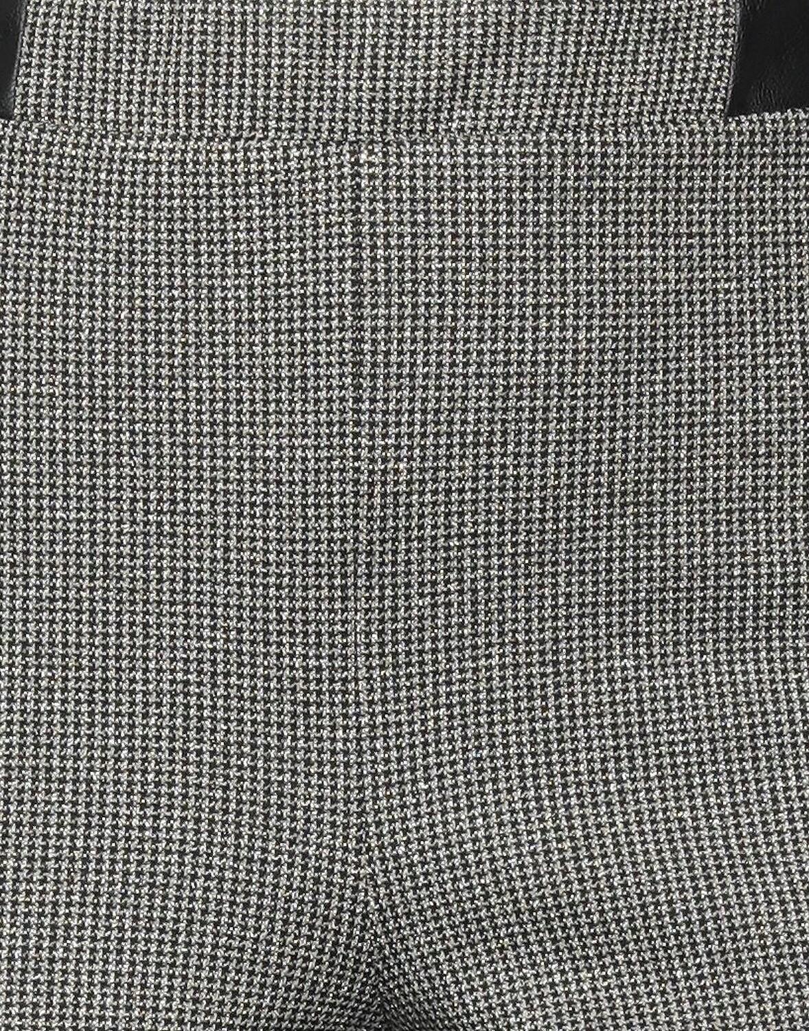 Полотняное переплетение, ламе, без аппликаций, «гусиные лапки», завышенная талия, зауженные брючины, стандартный крой, множество карманов, стрейч, брюки