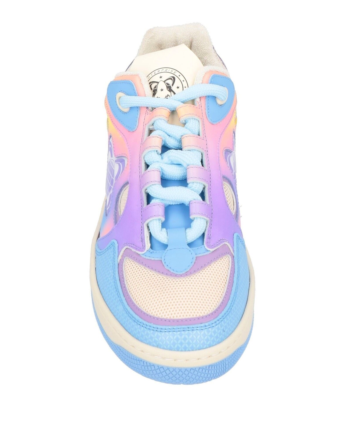 Кожа, техническая ткань, логотип бренда, разноцветный рисунок, внутренняя поверхность из ткани, шнуровка, скругленный носок, без каблука, резиновая подошва, содержит нетекстильные части животного происхождения, низкие кеды и кроссовки