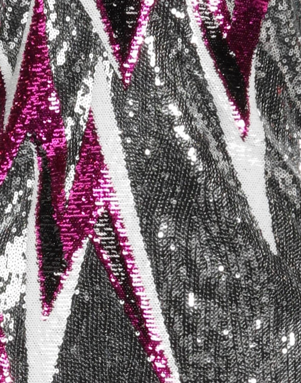 Тюль, логотип бренда, пайетки, разноцветный узор, глубокий вырез, длинные рукава, внутри на подкладке, застежка-молния, без карманов, фасон-карандаш