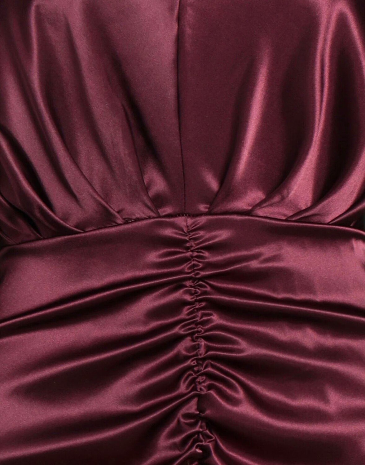 Атлас, Оборки, Одноцветное изделие, Длинные рукава, V-образный вырез