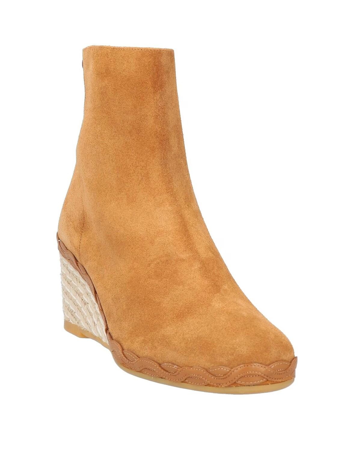 Кожа, эффект замши, без аппликаций, одноцветное изделие, кожаная подкладка, застежка-молния, скругленный носок, танкетка, верёвочная танкетка, резиновая подошва, содержит нетекстильные части животного происхождения, замшевые ботильоны
