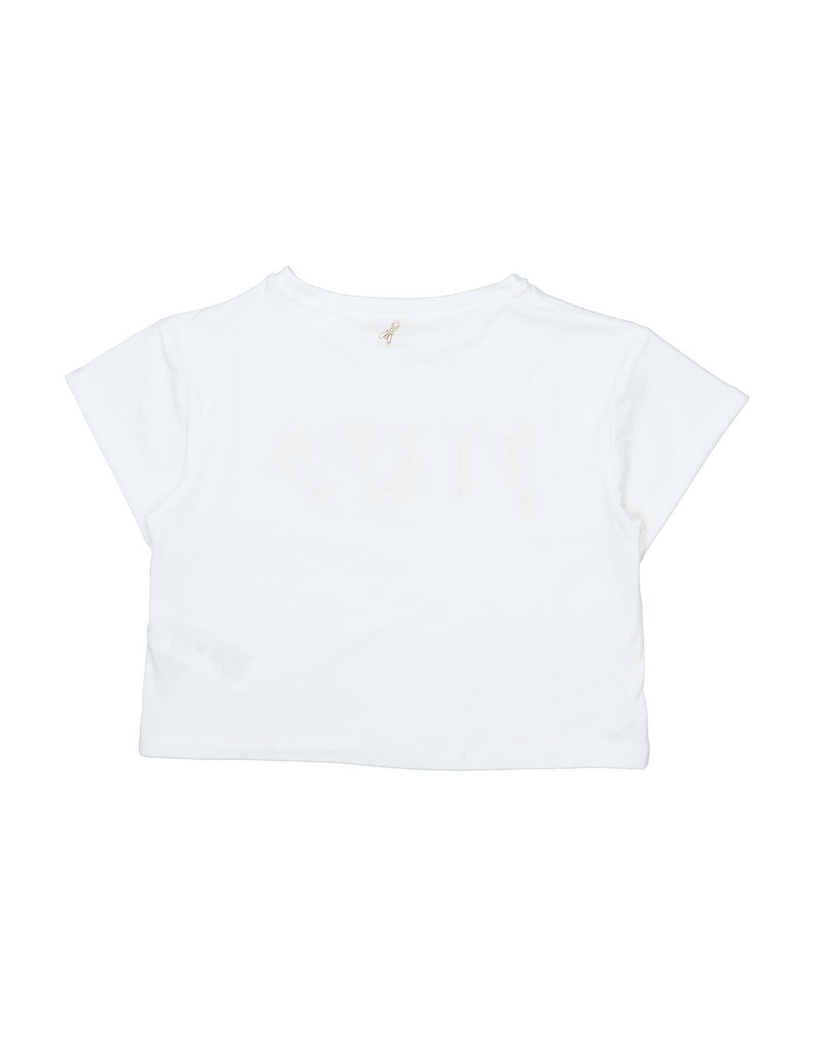 Джерси, стразы, логотип, одноцветное изделие, круглый вырез горловины, короткие рукава, без карманов, эластичный, ручная стирка, не подвергать химчистке, гладить при температуре не выше 110°C, не отбеливать, нельзя сушить в стиральной машине