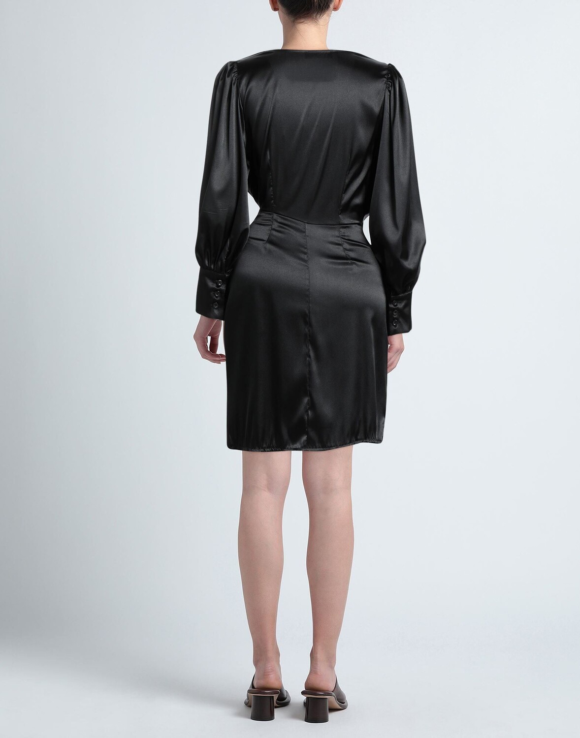 Атлас, Оборки, Одноцветное изделие, Длинные рукава, V-образный вырез