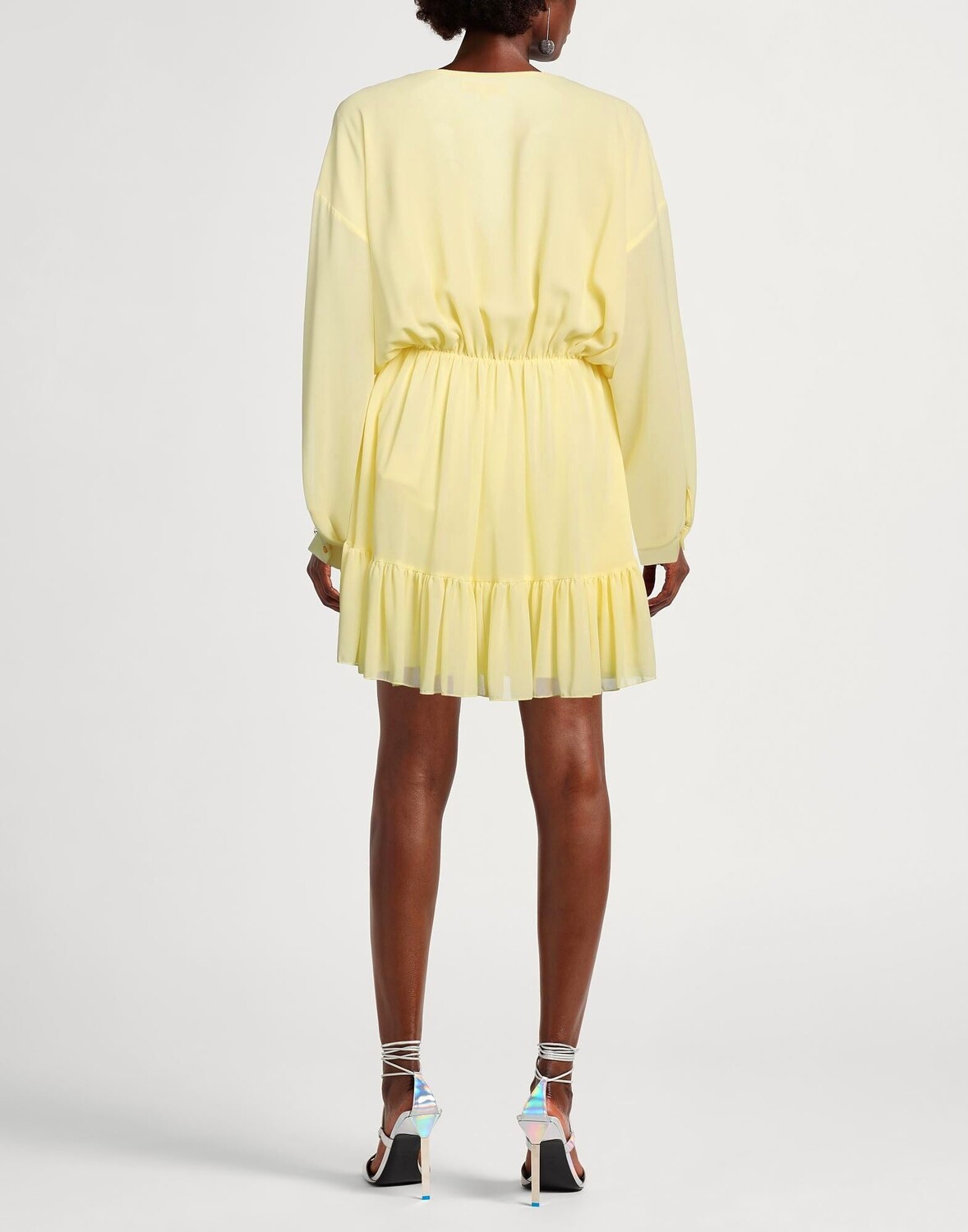 Креп, оборки, одноцветное изделие, глубокий вырез, длинные рукава, манжеты на пуговицах, на подкладке, без карманов, фасон трапеция