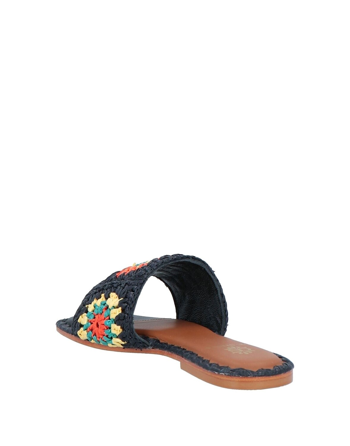 Рафия, без аппликаций, разноцветное, подкладка из кожи, квадратный носок, без каблука, кожаная подошва, содержит нетекстильные части животного происхождения, шлепанцы, маленького размера