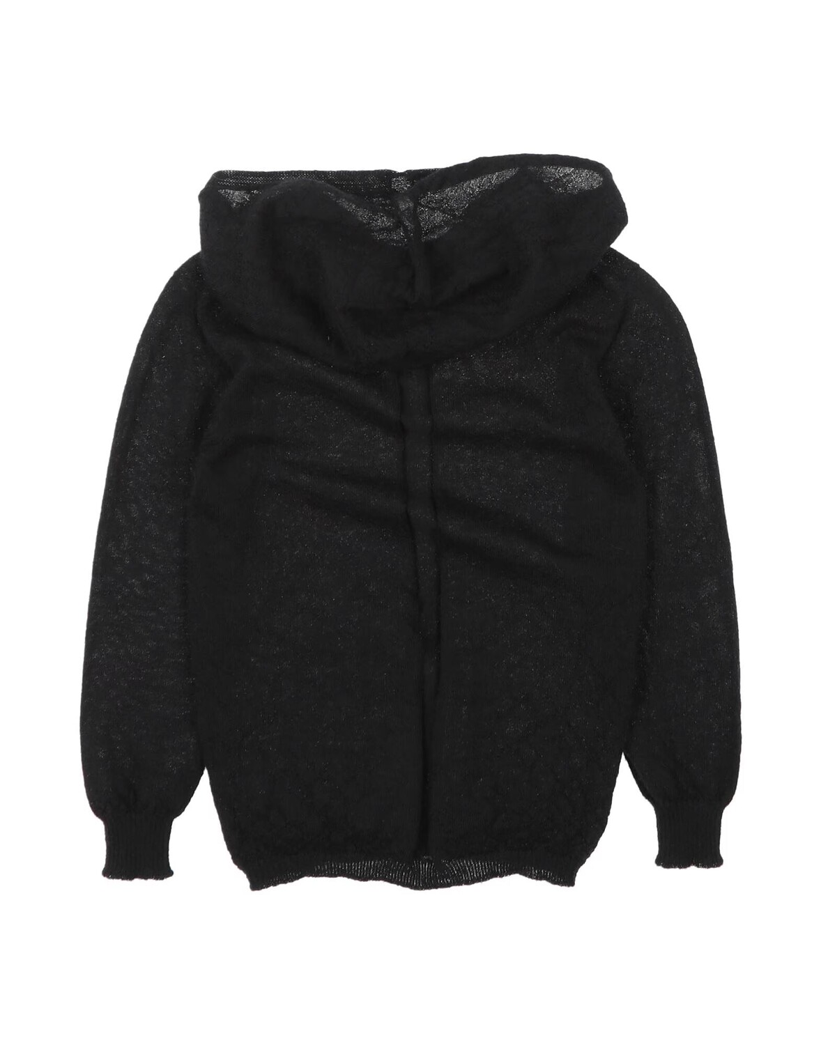 Трикотаж, легкая вязка, без аппликаций, одноцветное изделие, воротник с капюшоном, длинные рукава, без карманов, ручная стирка, химическая чистка, нельзя отбеливать, нельзя сушить в стиральной машине, гладить при температуре не выше 110°C