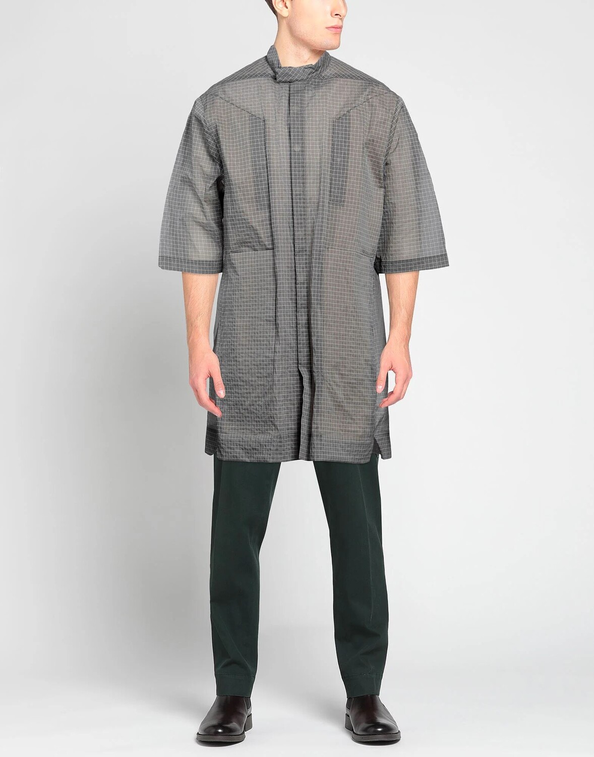 Ракушка, без аппликаций, одноцветное изделие, воротник-стойка, короткие рукава, частично на подкладке, кнопки, множество карманов, длинная рубашка