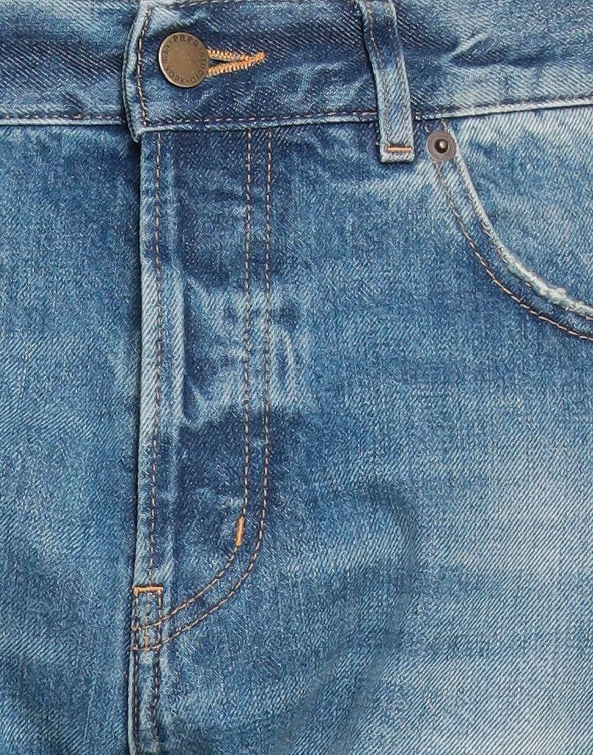 Деним, выцветший, логотип бренда, одноцветное изделие, средняя степень стирки, завышенная талия, шлевки для ремня, застежка на пуговицы, множество карманов, эффект потертости, модель прямого кроя, большой размер