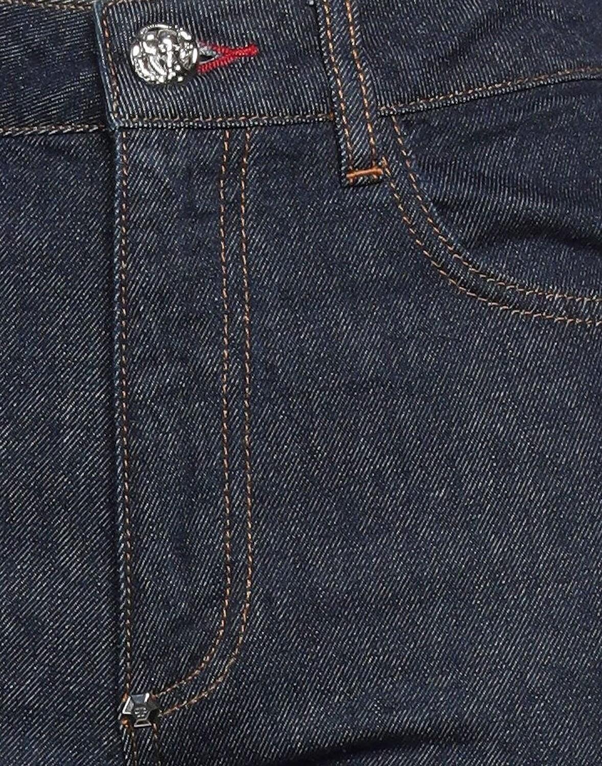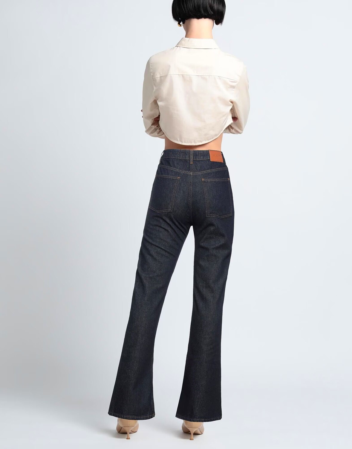 Джинсовая ткань, логотип бренда, одноцветное изделие, темная стирка, расклешенный крой, классический крой, застежка-молния, пуговицы, множество карманов, содержит нетекстильные части животного происхождения, расклешенная и широкая штанина