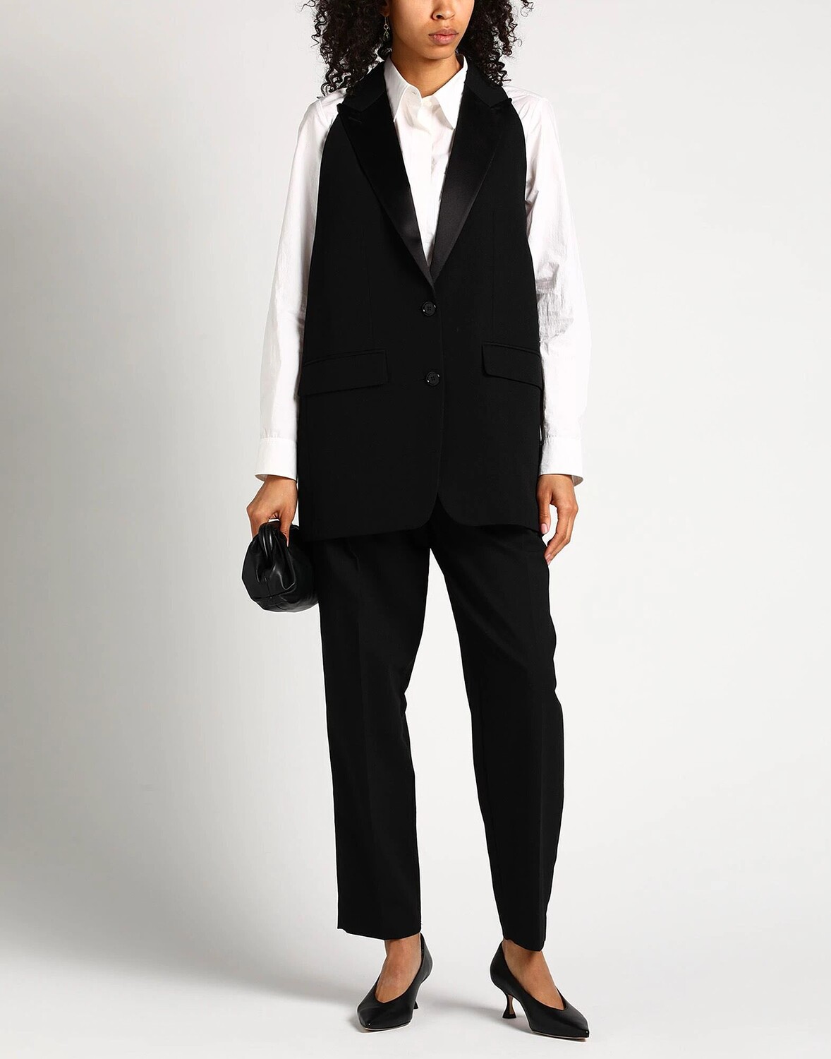 Классная шерсть, атлас, без аппликаций, одноцветное изделие, воротник с лацканами, однобортный, без рукавов, на подкладке, 2 пуговицы, множество карманов, карман с клапаном, пиджак однобортный, большого размера