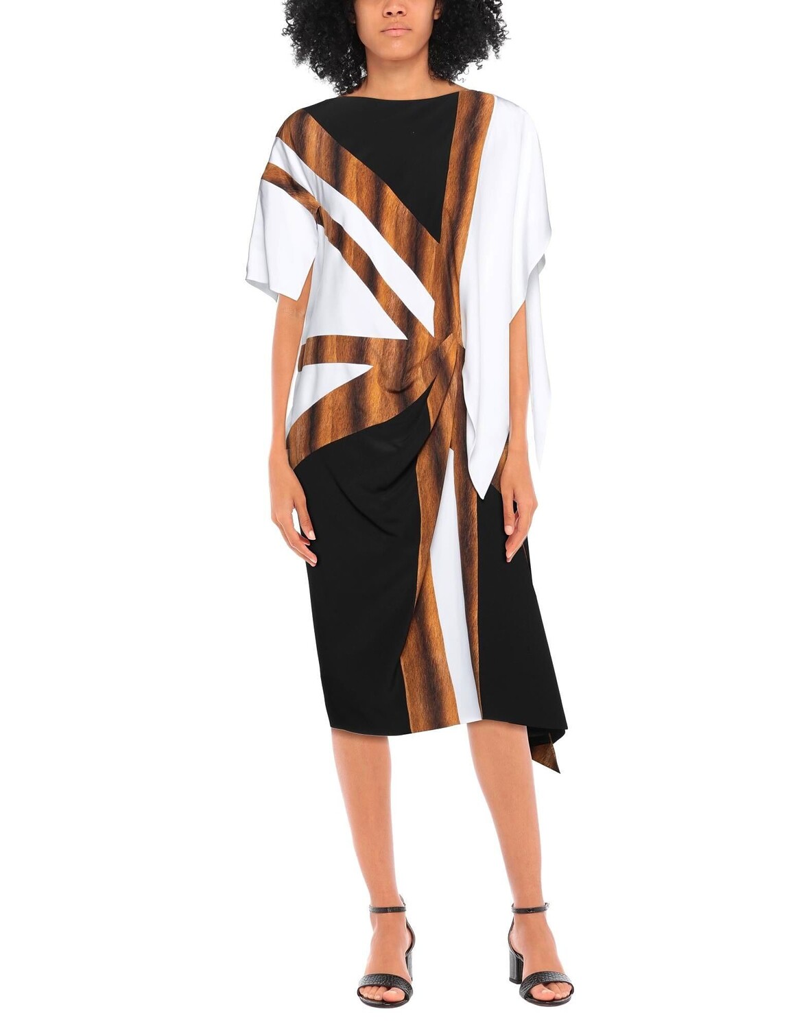 Креп, без аппликаций, разноцветный узор, круглый воротник, короткие рукава, без подкладки, без карманов