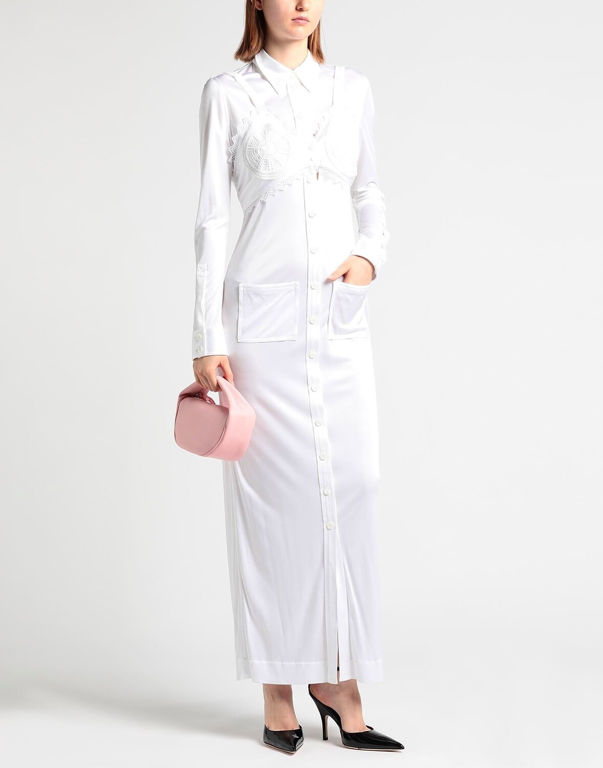 Джерси, кружево, без аппликаций, одноцветное изделие, воротник на пуговицах, длинные рукава, без подкладки, застежка на пуговицы, множество карманов, химчистка, не отбеливать, нельзя сушить в стиральной машине, платье-рубашка