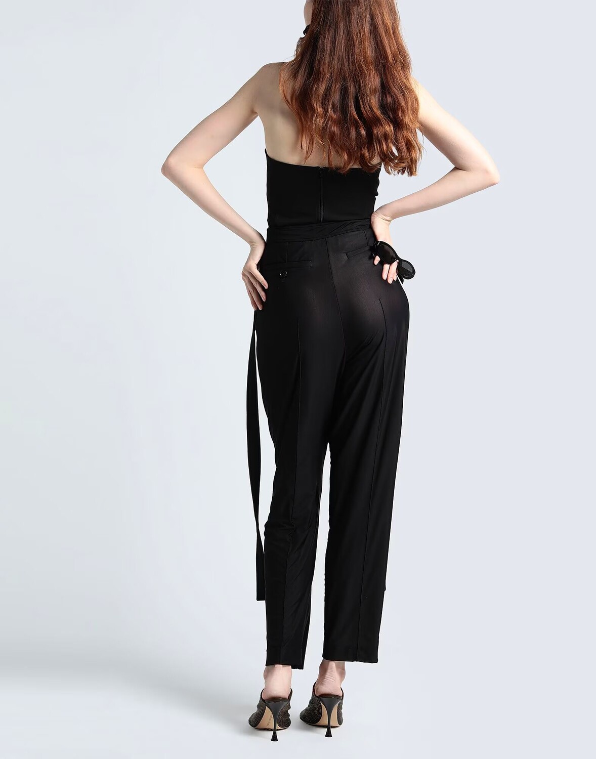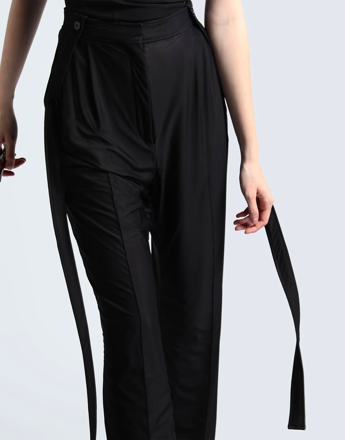 Содержит нетекстильные части животного происхождения, трикотаж, съемная аппликация, одноцветное изделие, зауженная брючина, стандартный крой, застежка-молния, застежка на крючки, множество карманов, эластичная ткань, завышенная талия