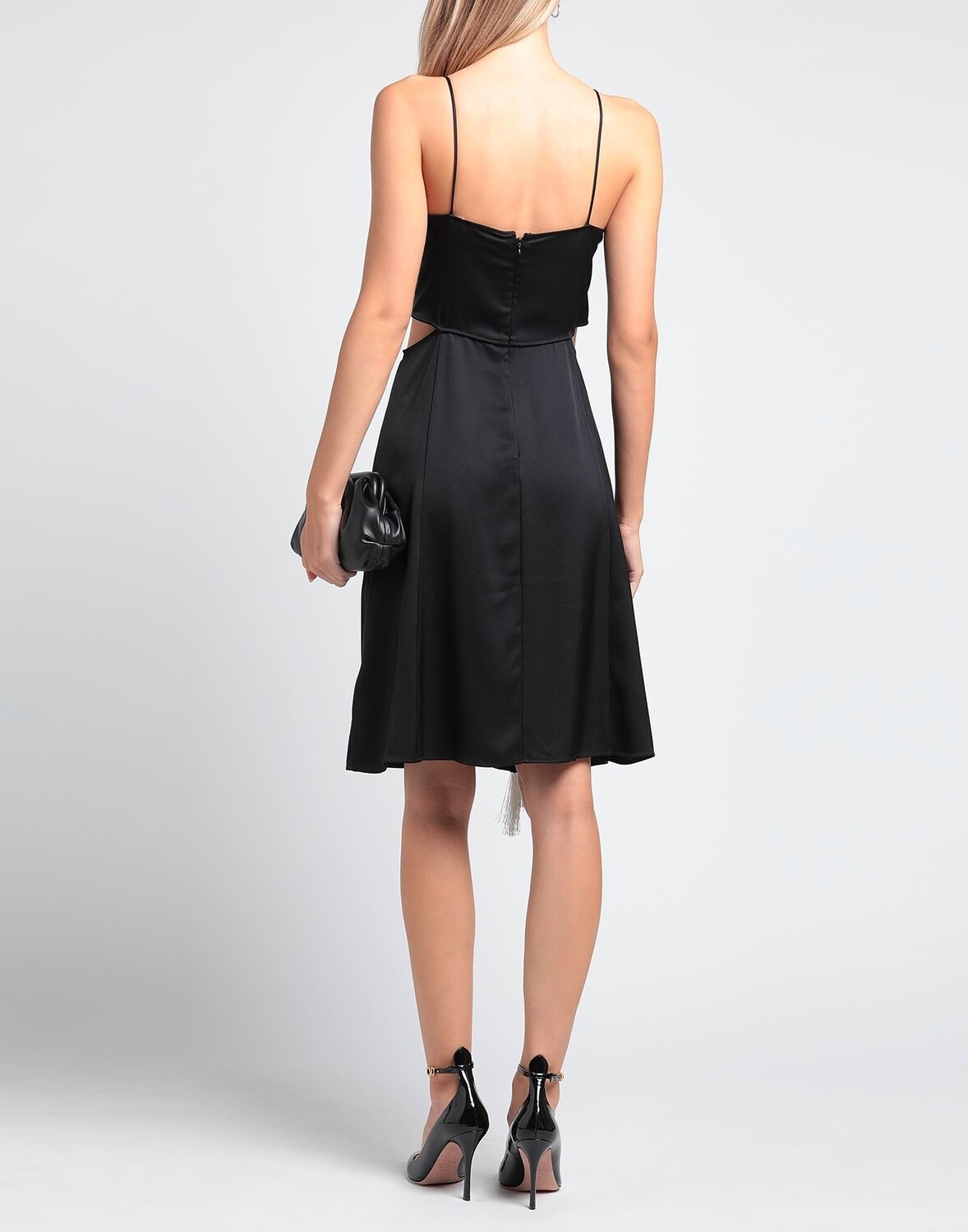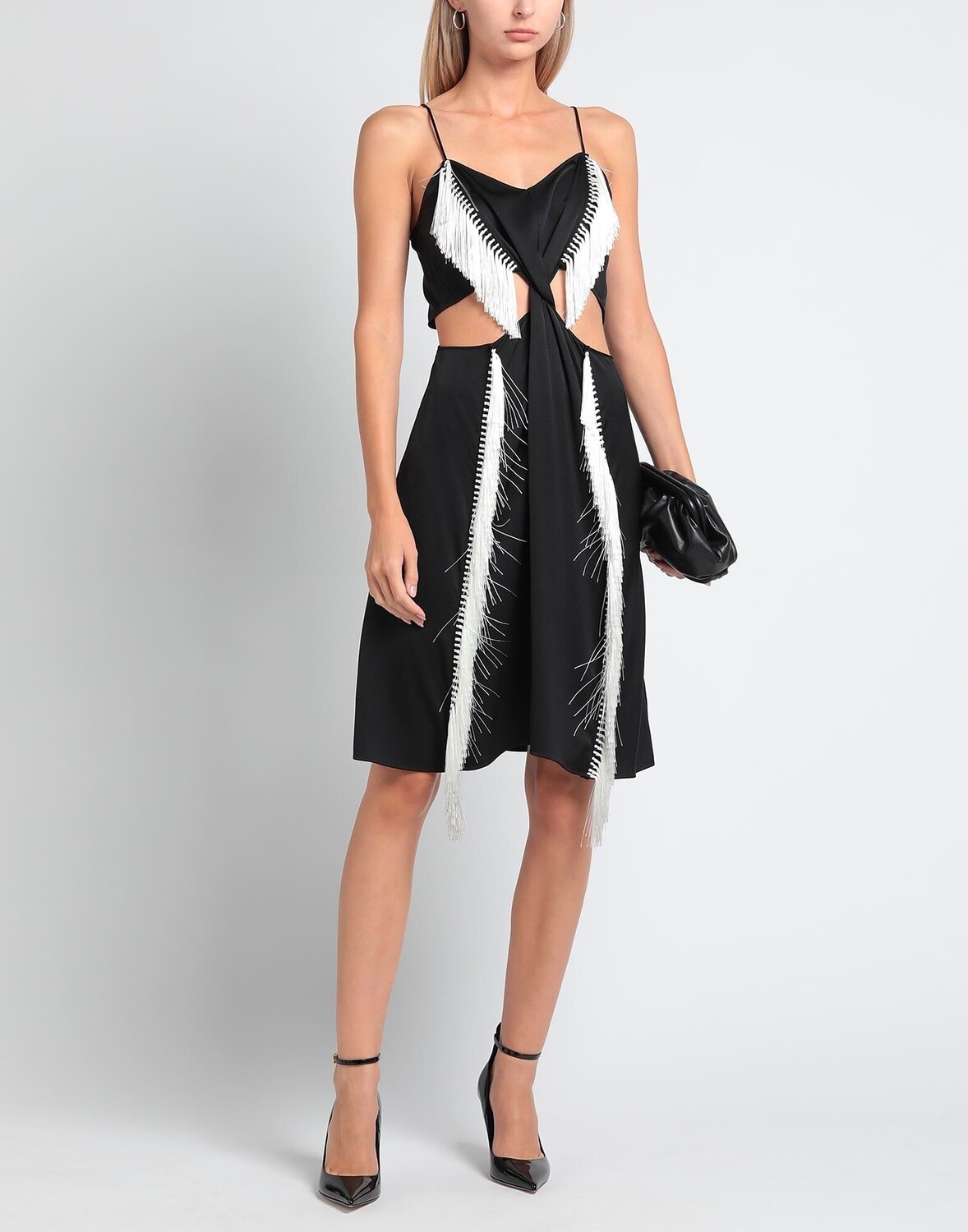 Атлас, бахрома, одноцветное изделие, глубокий вырез, без рукавов, без подкладки, с двойными пуговицами, без карманов, фасон-карандаш