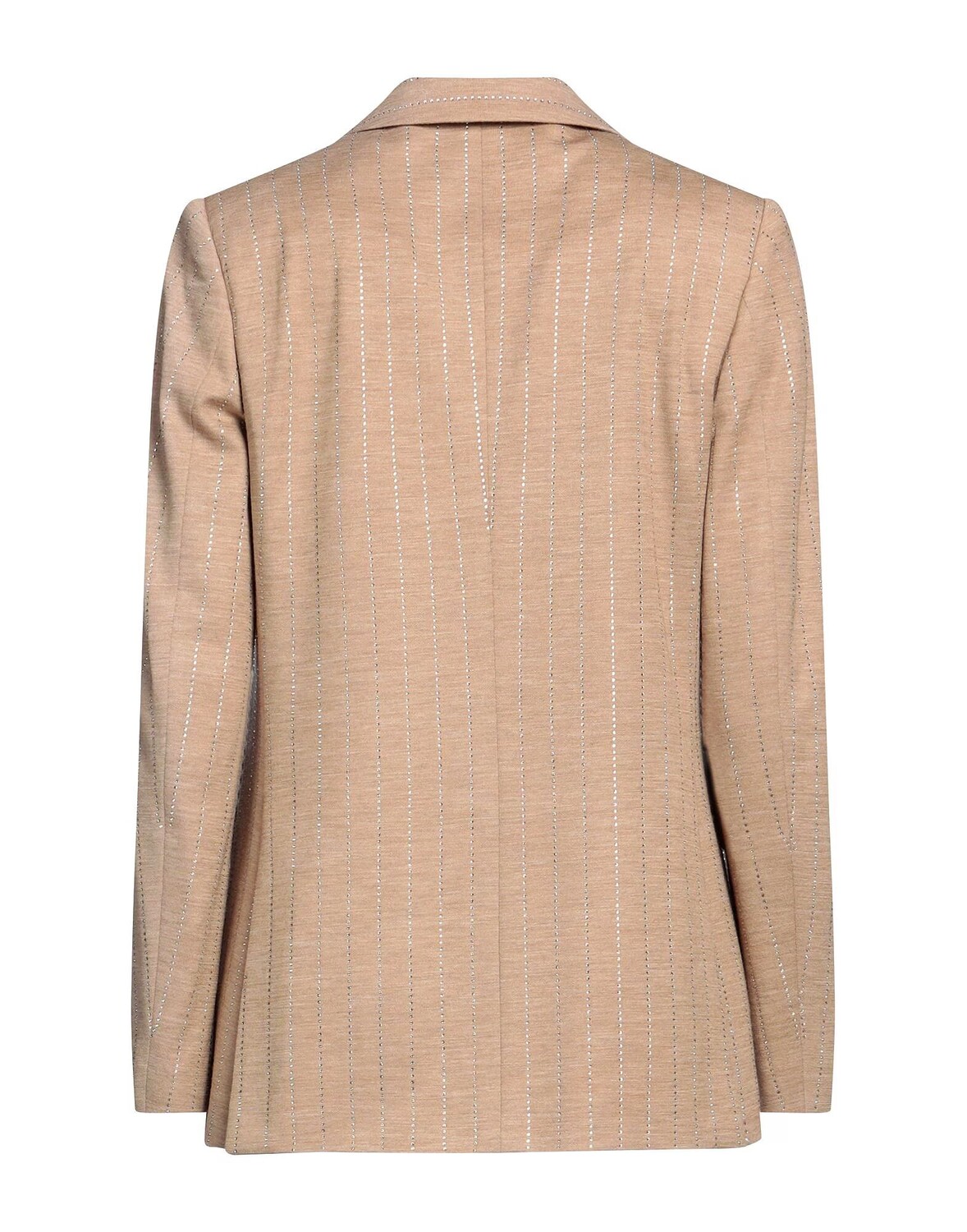 Трикотаж, меланж, легкая вязка, стразы, полоски, воротник с лацканами, однобортный, длинные рукава, на подкладке, 2 пуговицы, множество карманов, двойная шлица сзади, однобортный пиджак, большого размера