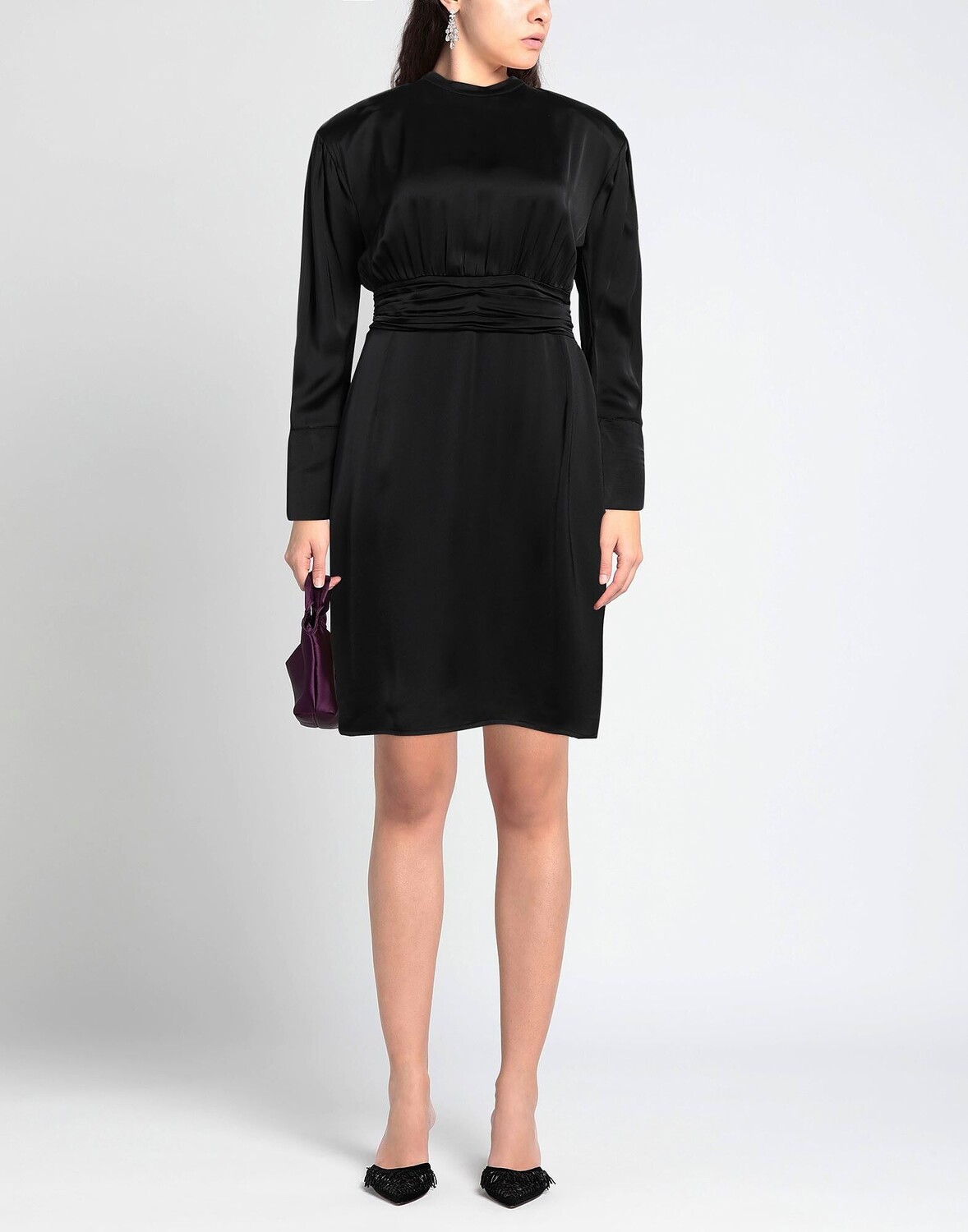 Атлас, оборки, одноцветное изделие, круглый вырез, длинные рукава, без подкладки, застежка-молния, без карманов, платье