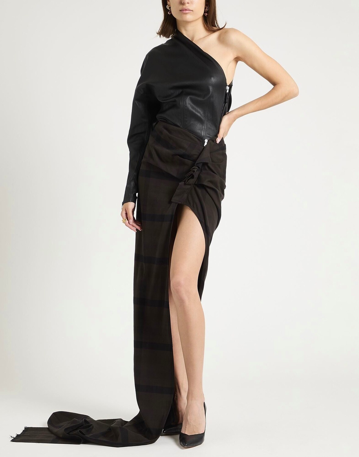 Фланель, оборки, узор «тартан», без подкладки, застежка-молния, разрез спереди, без карманов, ручная стирка или химчистка, нельзя отбеливать, нельзя сушить в стиральной машине, асимметричная юбка