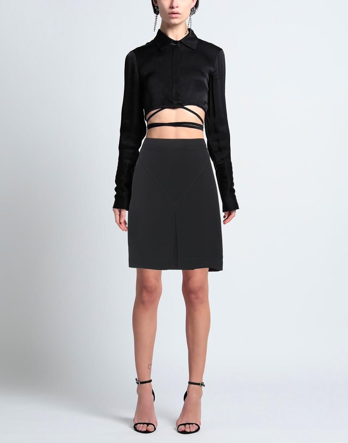 Креп, складки, логотип бренда, одноцветное изделие, внутри на подкладке, застежка-молния, без карманов, расклешенная модель
