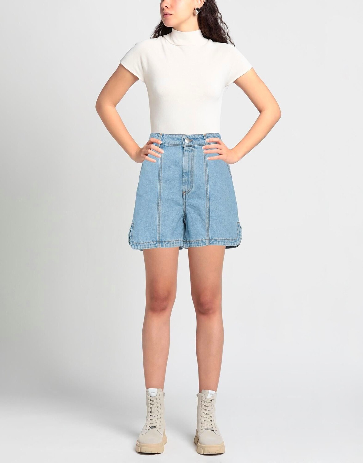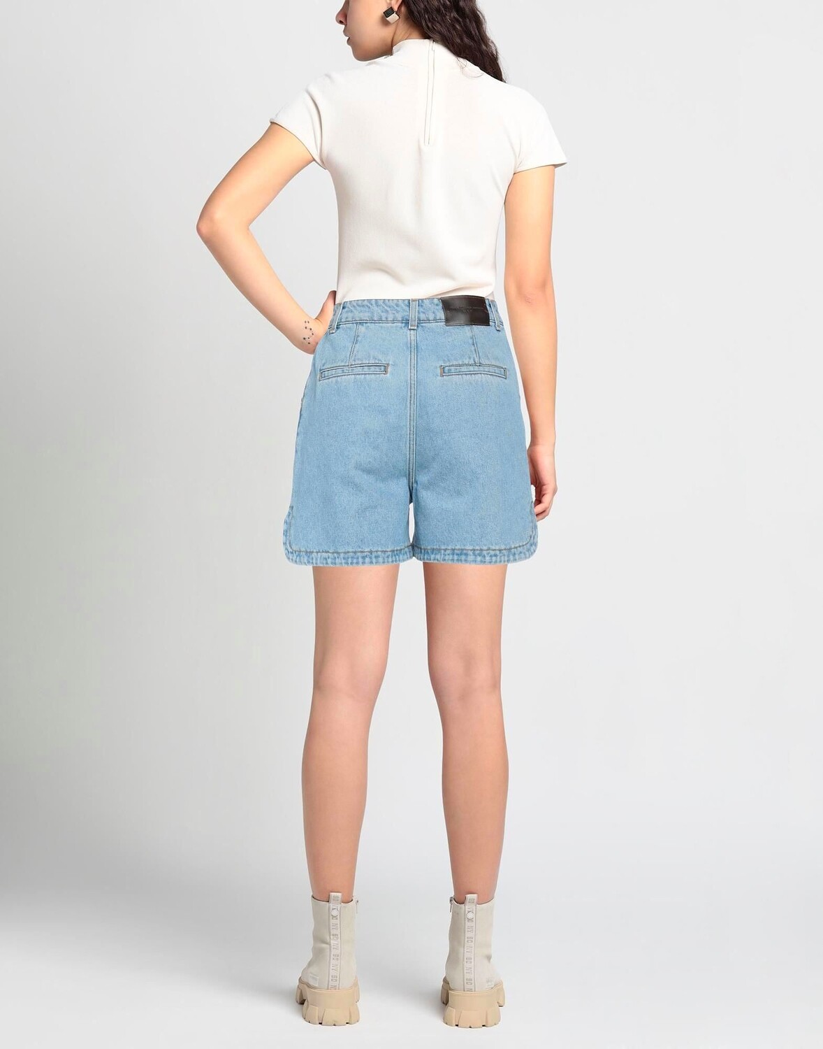 Деним, выцветший, логотип бренда, одноцветное изделие, светлая стирка, завышенная талия, шлевки для ремня, застежка-молния, 1 пуговица, множество карманов, шорты