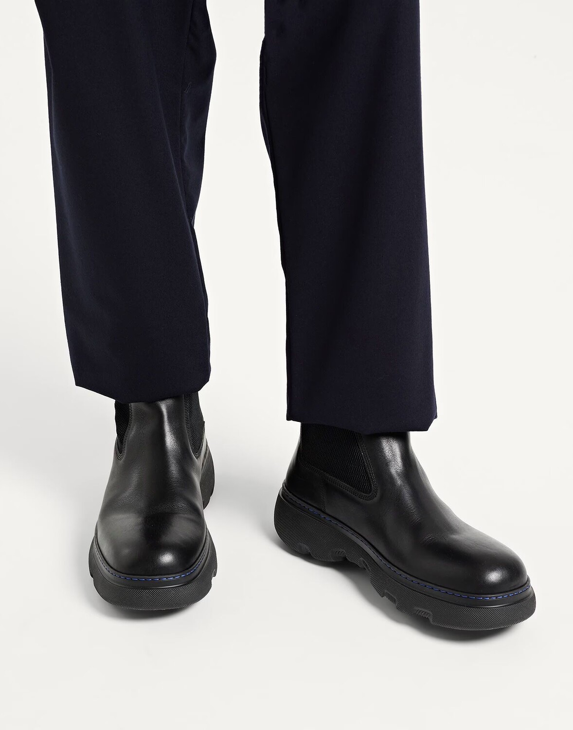 Кожа, без аппликаций, одноцветное изделие, подкладка из кожи, круглый носок, плоская поверхность, подошва с резиновым тиснением, содержит нетекстильные части животного происхождения, массивные ботинки, маленький размер