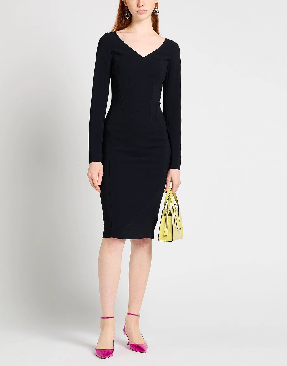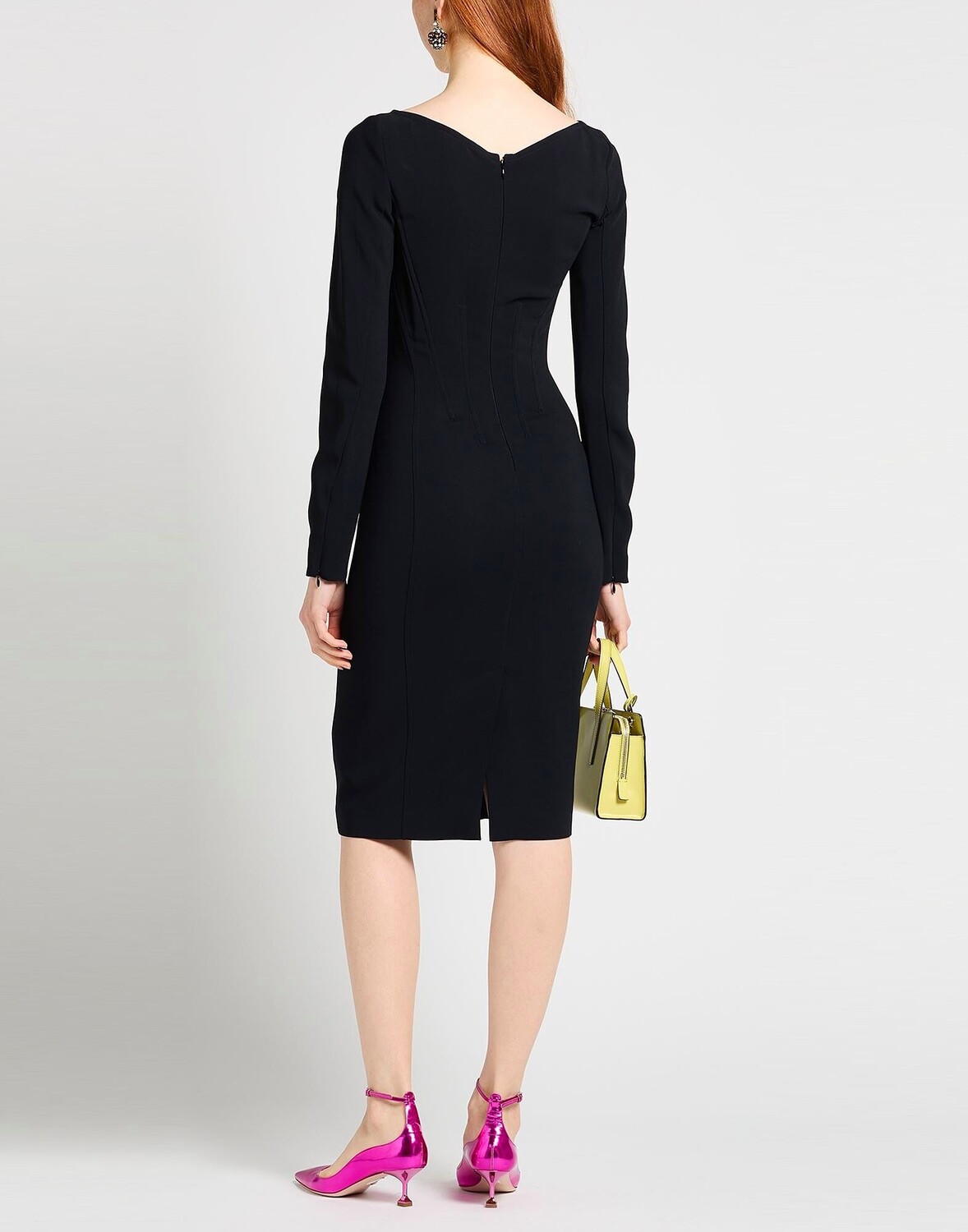 Облегающее платье, креп, без аппликаций, одноцветное изделие, v-образный вырез, длинные рукава, застежка-молния, без карманов, стрейч, химчистка, нельзя отбеливать, нельзя сушить в стиральной машине