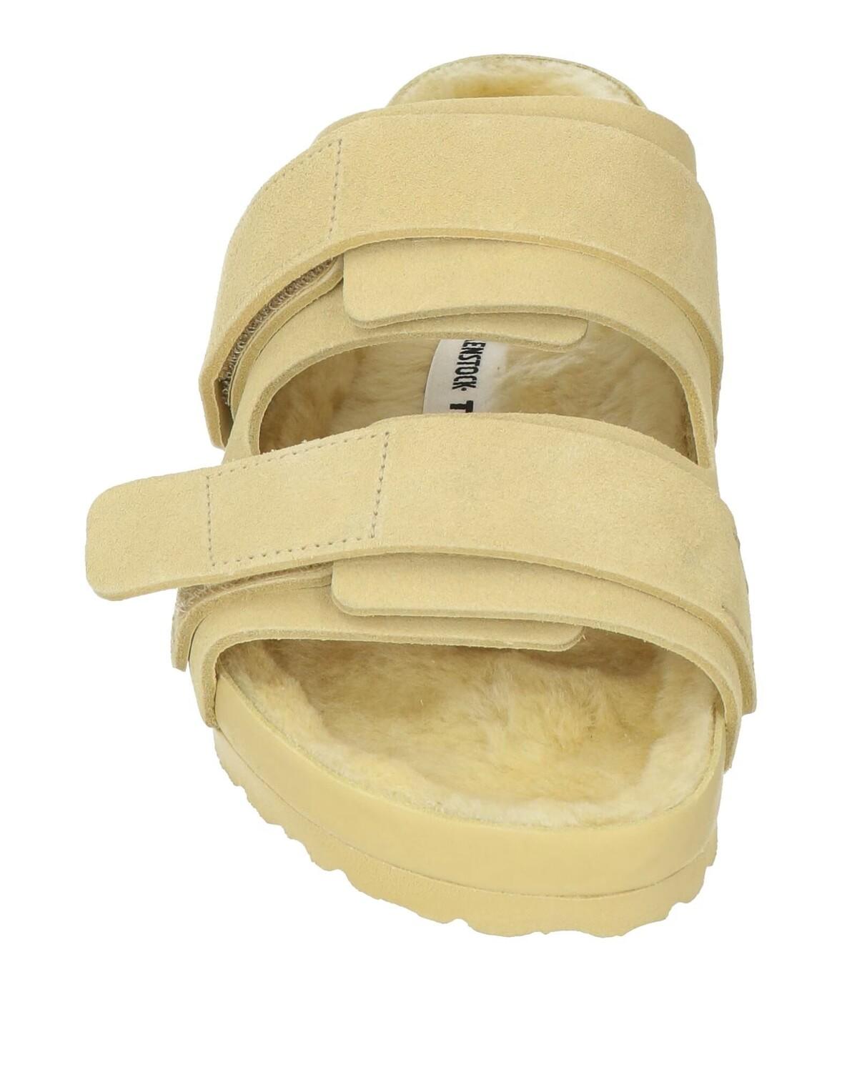 Замша, логотип бренда, одноцветное изделие, подкладка из овчины, застежка-липучка, круглый носок, танкетка, резиновая подошва с тиснением, содержит нетекстильные части животного происхождения, стелька: стандартного размера, технические сандалии