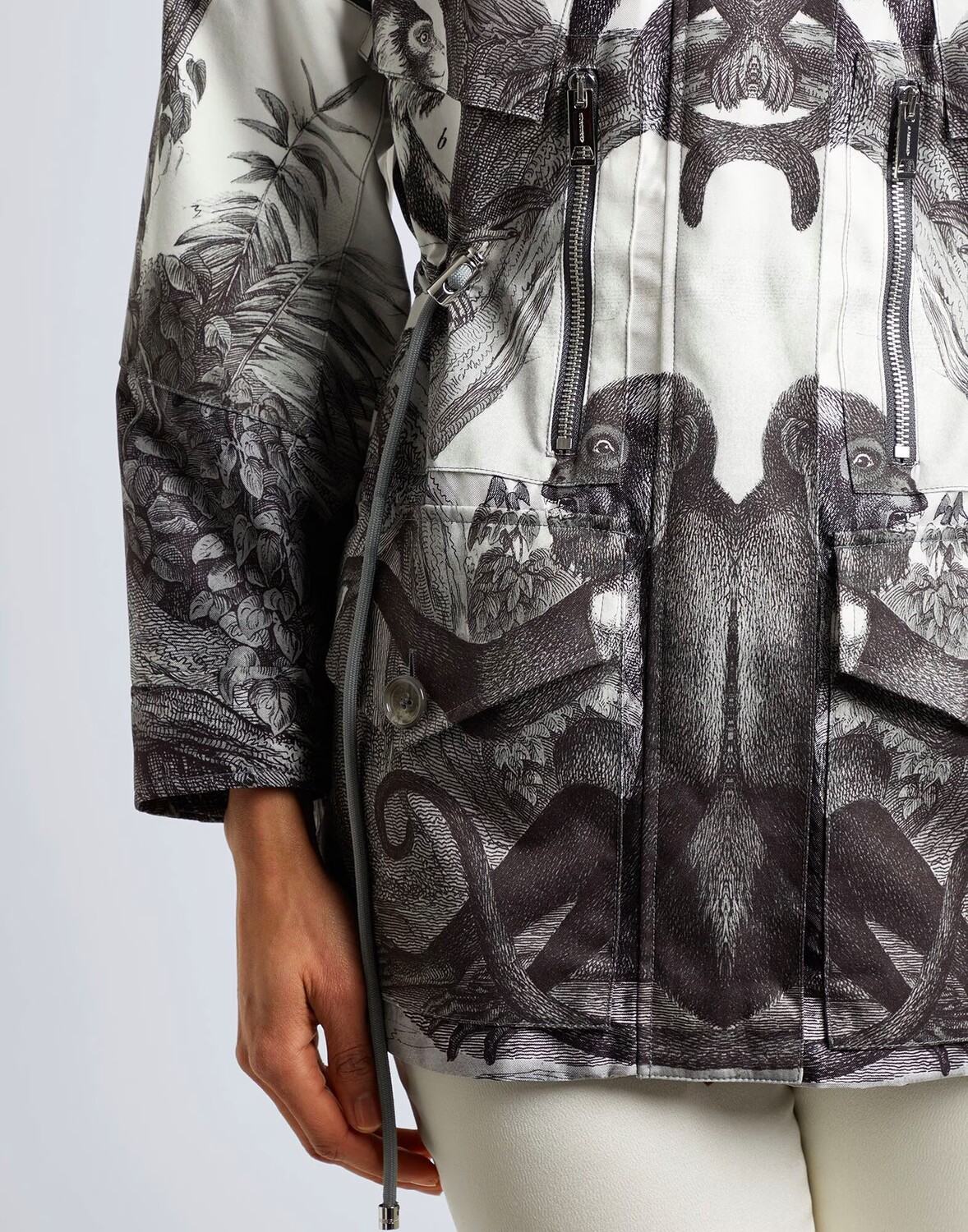 Сатин, логотип бренда, многоцветный, воротник «Питер Пэн», длинные рукава, внутри на подкладке, кнопки, застежка-молния, множество карманов, содержит нетекстильные части животного происхождения, химчистка, нельзя сушить в стиральной машине, не отбеливать, верхняя рубашка
