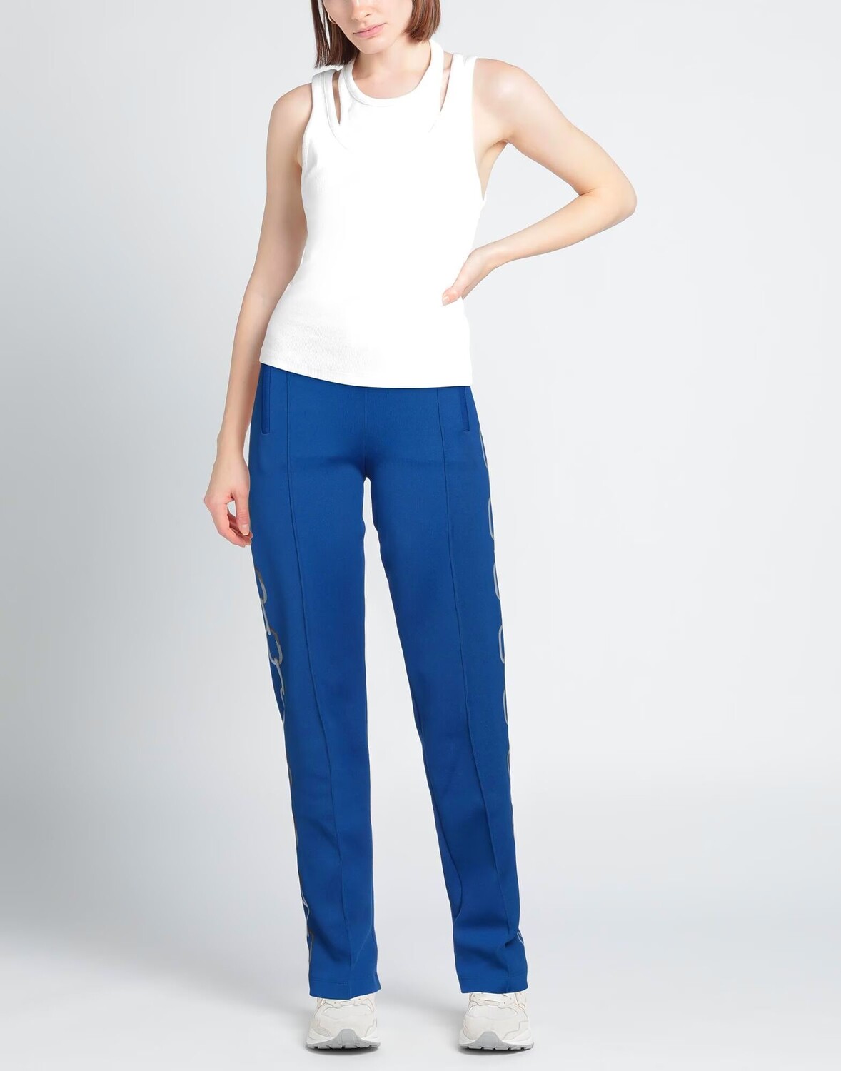 Джерси, логотип бренда, одноцветное изделие с принтом, завышенная талия, резинка на талии, прямые брючины, классический крой, множество карманов, карман на молнии, спортивный стиль