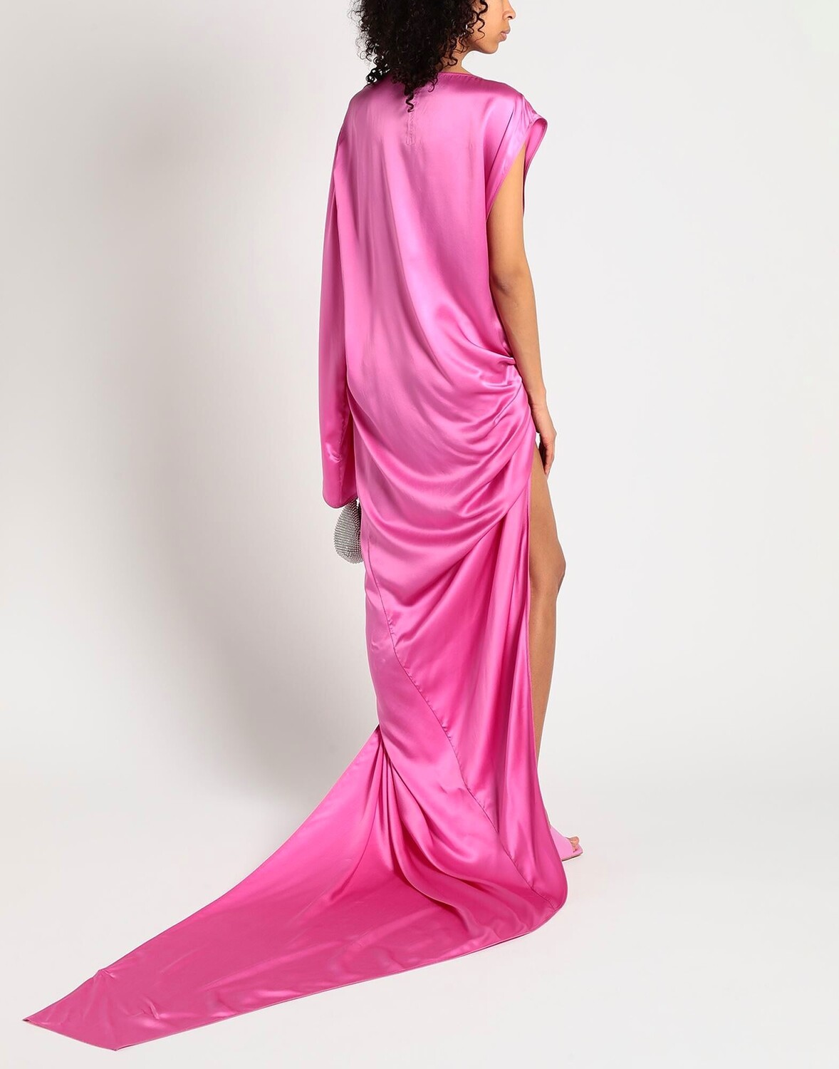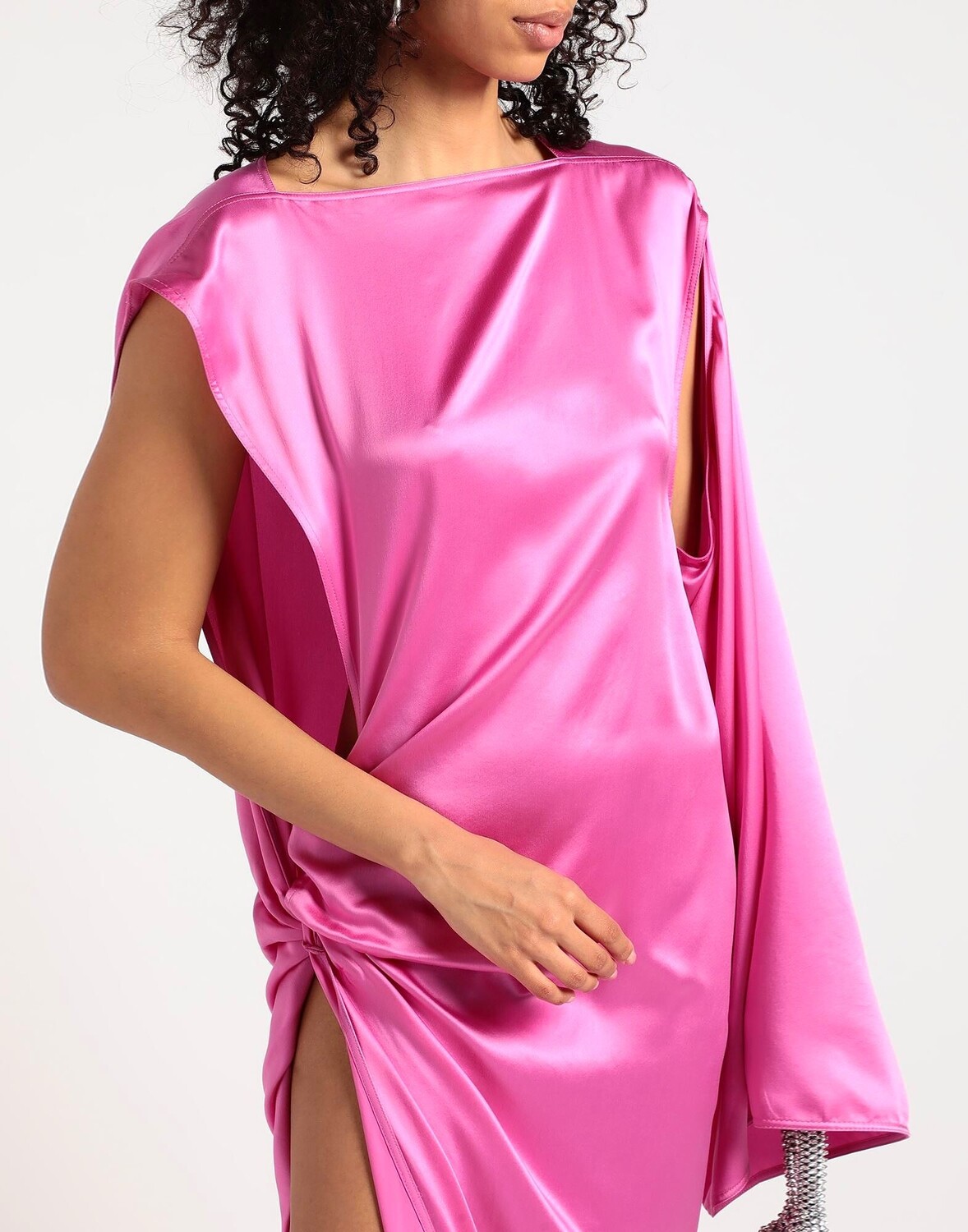 Атлас, без аппликаций, одноцветное изделие, овальный вырез, без рукавов, без подкладки, без карманов, асимметричное платье