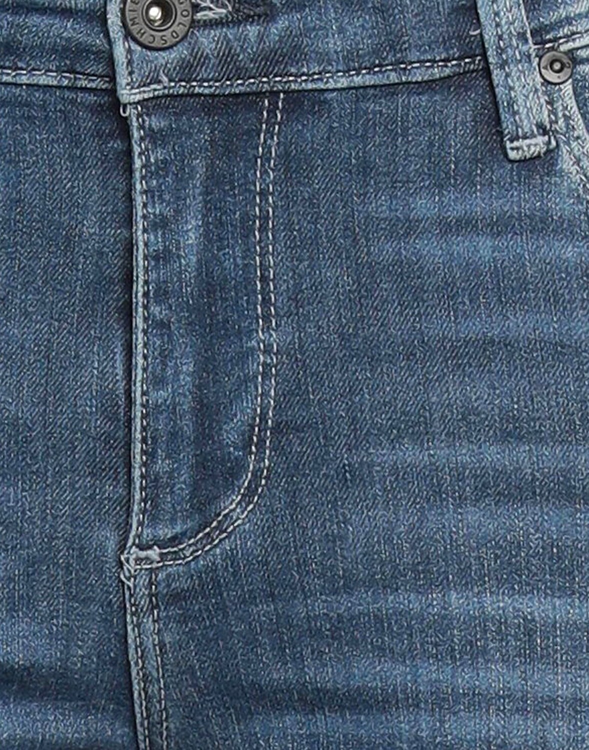 Деним, эффект потертости, логотип бренда, одноцветное изделие, средняя потертость, завышенная талия, шлевки для ремня, зауженные брючины, узкие брюки, 1 пуговица, застежка-молния, пять карманов, стрейч, модель скинни