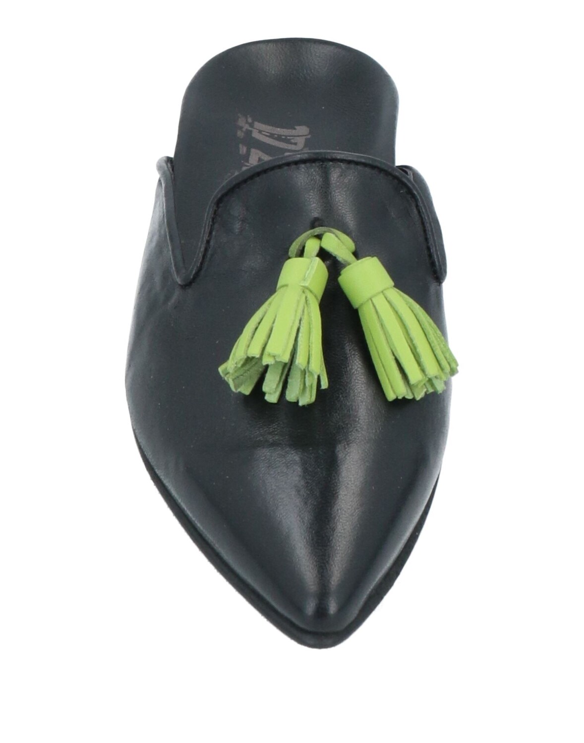 Кожа, кисточки, одноцветное изделие с аппликациями, острый носок, плоские, содержит нетекстильные части животного происхождения, большой размер, мюли