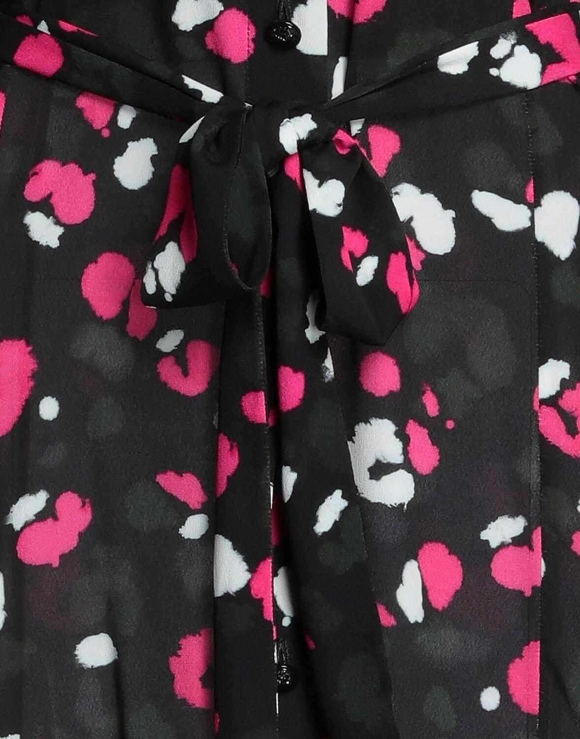 Креп, пояс, вспышки, леопардовый принт, классический вырез горловины, длинные рукава, манжеты на пуговицах, пуговицы, без карманов, без подкладки, платье-рубашка