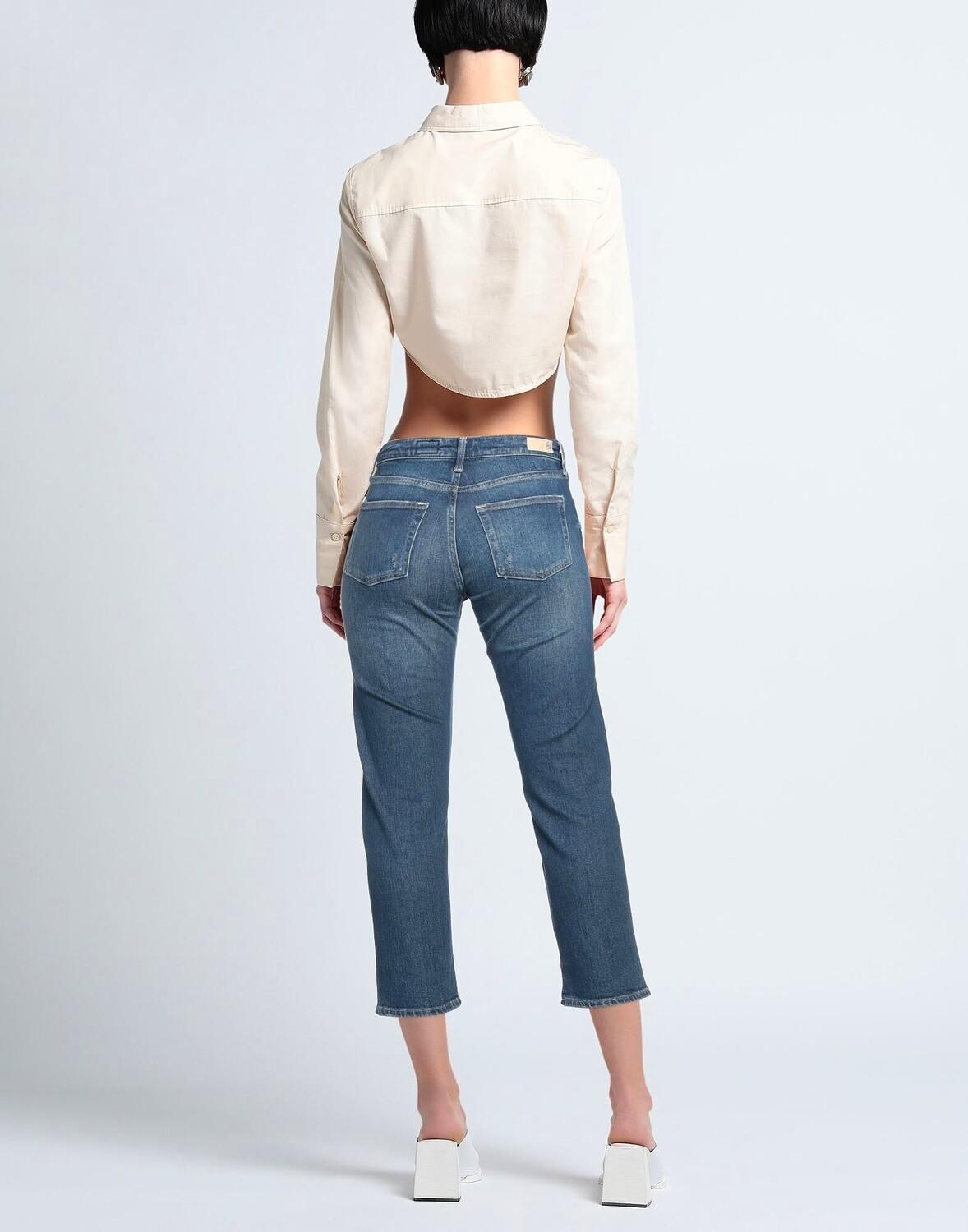 Деним, выцветший, логотип бренда, одноцветное изделие, средняя степень стирки, завышенная талия, зауженные брючины, классический крой, застежка-молния, пуговицы, множество карманов, модель прямого кроя