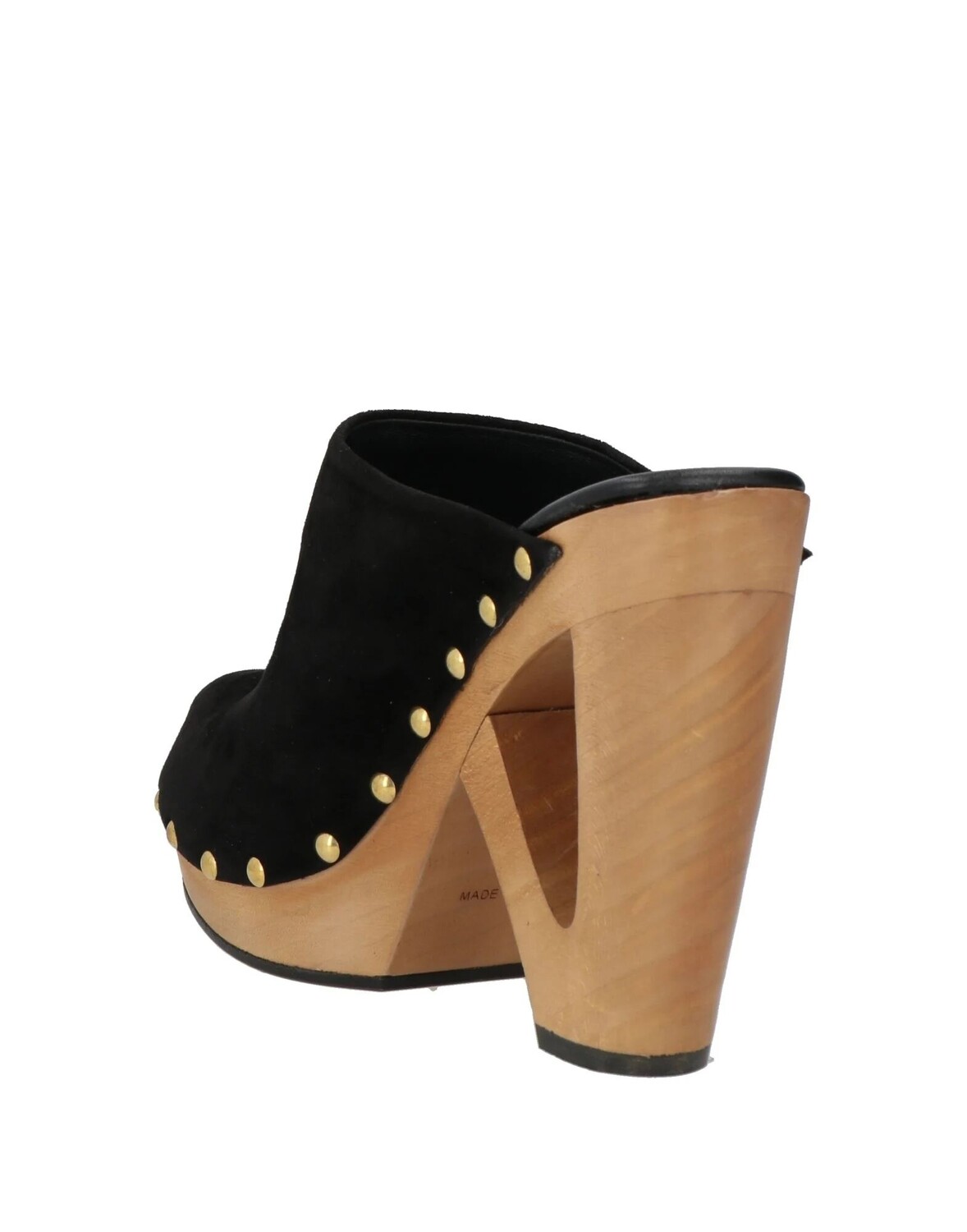 Замша, без аппликаций, одноцветное изделие, подкладка из кожи, круглый носок, конический каблук, деревянный каблук, кожаная подошва, содержит нетекстильные части животного происхождения, сабо