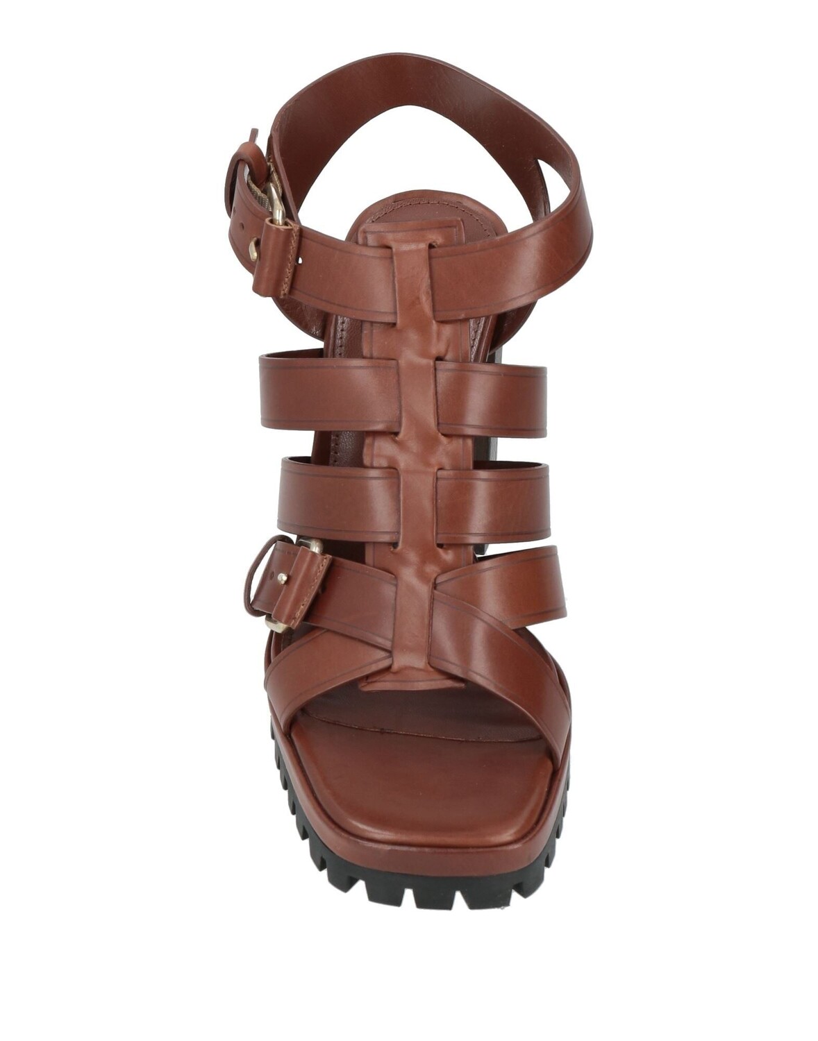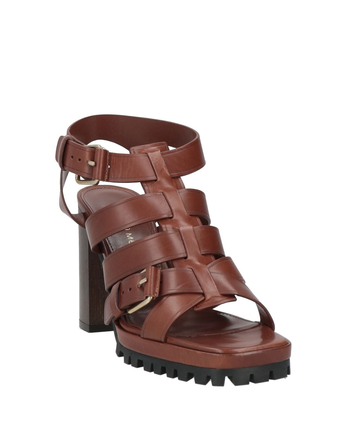 Кожа, пряжка, одноцветное изделие, кожаная подкладка, ремешок на щиколотке с пряжкой, квадратный носок, квадратный каблук, подошва с выступами, содержит нетекстильные части животного происхождения, гладиаторские сандалии