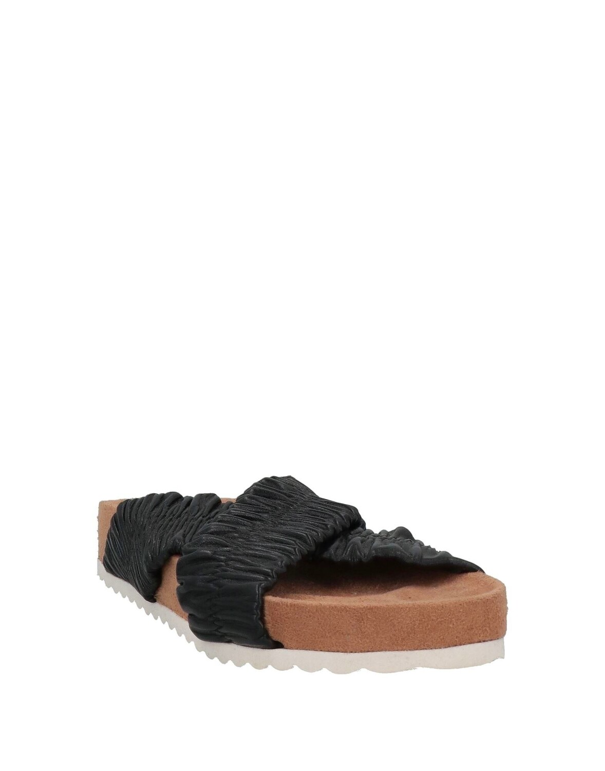 Кожа, присборки, одноцветное изделие, подкладка из кожи, закругленный носок, плоская поверхность, подошва с резиновыми накладками, содержит нетекстильные части животного происхождения, сандалии