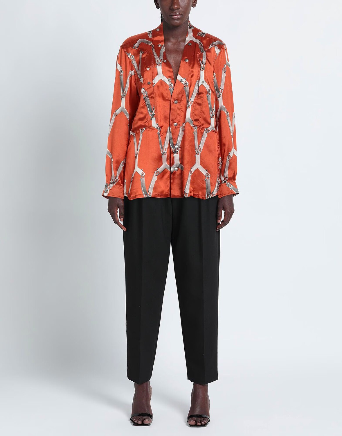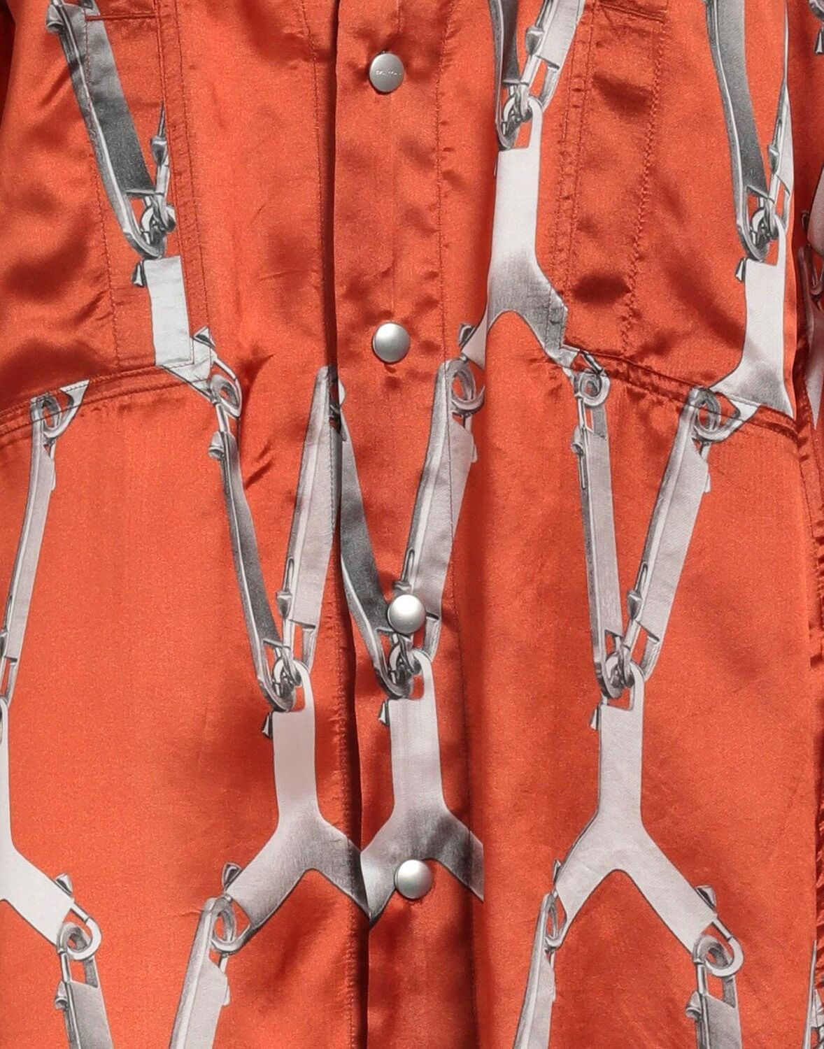 Атлас, без аппликаций, разноцветный узор, глубокий вырез, длинные рукава, манжеты на пуговицах, застежка на кнопки, множество карманов, карман на кнопках, изделие изготовлено из древесины или целлюлозы из ответственно управляемых лесов., маленький размер.