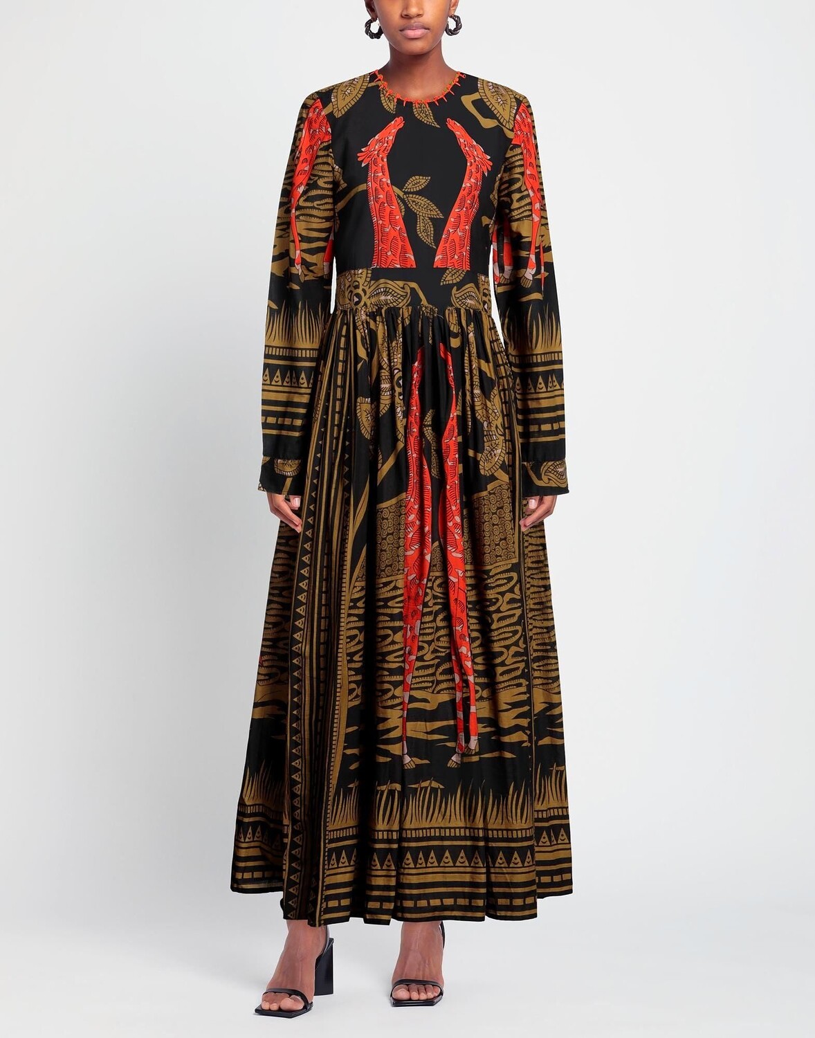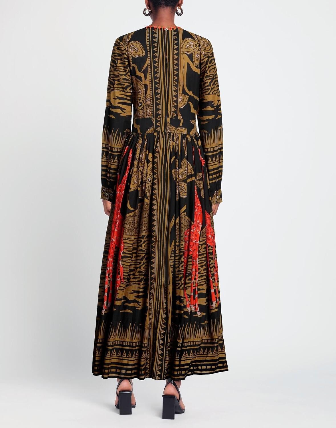Тканое, без аппликаций, разноцветное, круглый вырез, длинные рукава, без подкладки, застежка-молния, 1 пуговица, без карманов, ручная работа, расклешенное платье