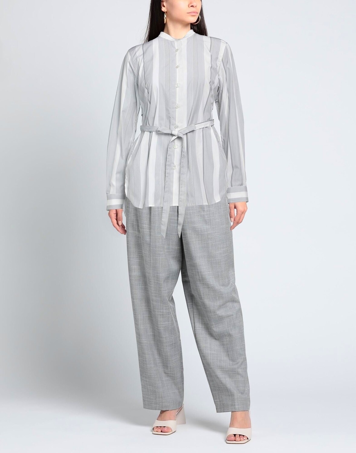 Ткань, пояс, в полоску, воротник-стойка, длинные рукава, застежка на пуговицы, без карманов, машинная стирка или химчистка, нельзя сушить в стиральной машине, не отбеливать, рубашка