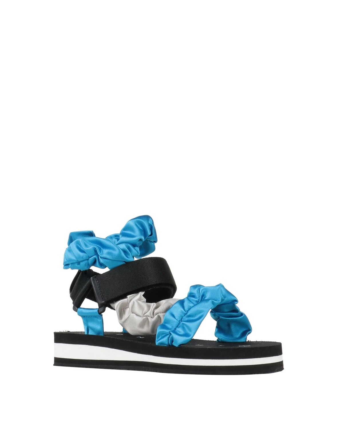 Атлас, без аппликаций, разноцветный узор, резиновая подкладка, ремешок с пряжкой на щиколотке, скругленный носок, без каблуков, плоская платформа, технические сандалии