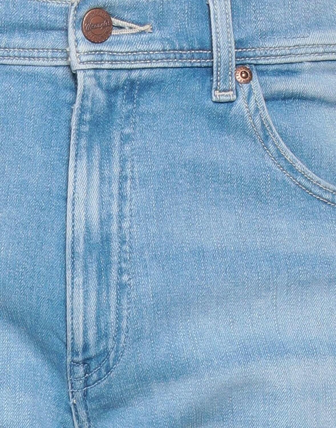 Деним, выцветший, логотип бренда, одноцветное изделие, светлая стирка, средняя посадка, шлевки для ремня, застежка-молния, 1 пуговица, пять карманов