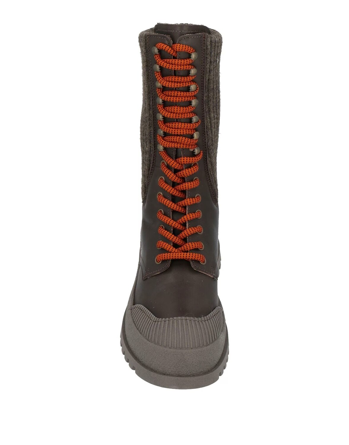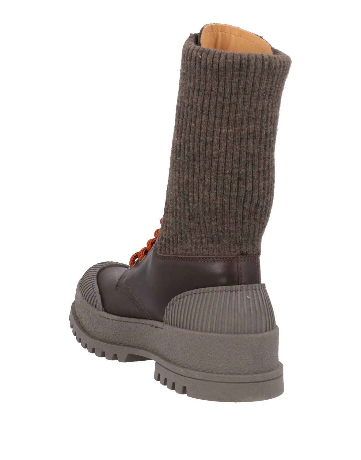 Кожа, трикотажное изделие, без аппликаций, одноцветное изделие, подкладка из кожи, шнуровка, скругленный носок, квадратный каблук, резиновая подошва, содержит нетекстильные части животного происхождения, массивные ботинки