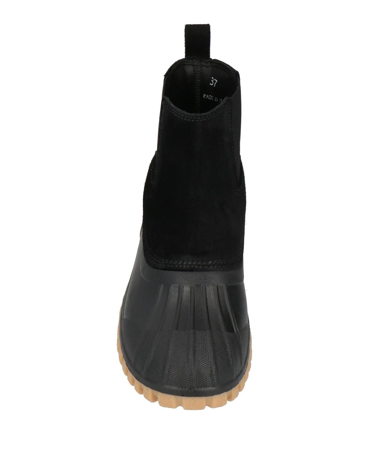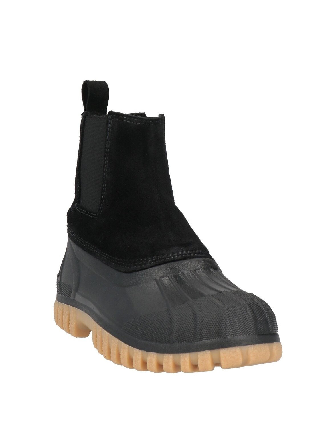 Кожа, эффект замши, без аппликаций, одноцветное изделие, кожаная подкладка, эластичные вставки, скругленный носок, плоская поверхность, резиновая подошва с тиснением, содержит нетекстильные части животного происхождения, массивные ботинки