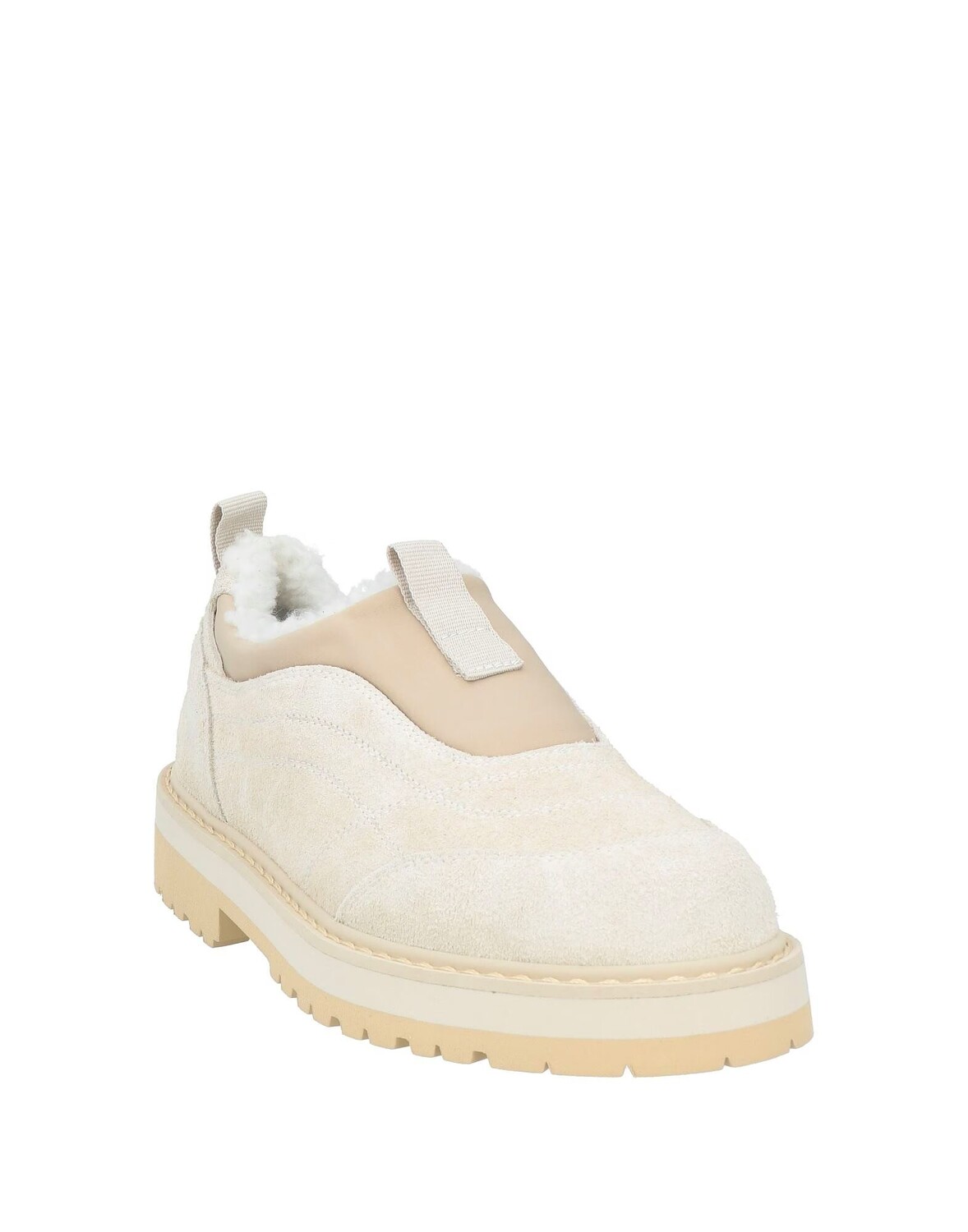 Лоферы, замша, трикотаж, без аппликаций, одноцветное изделие, на подкладке из овчины, круглый носок, плоская подошва, с выступами, содержит нетекстильные части животного происхождения