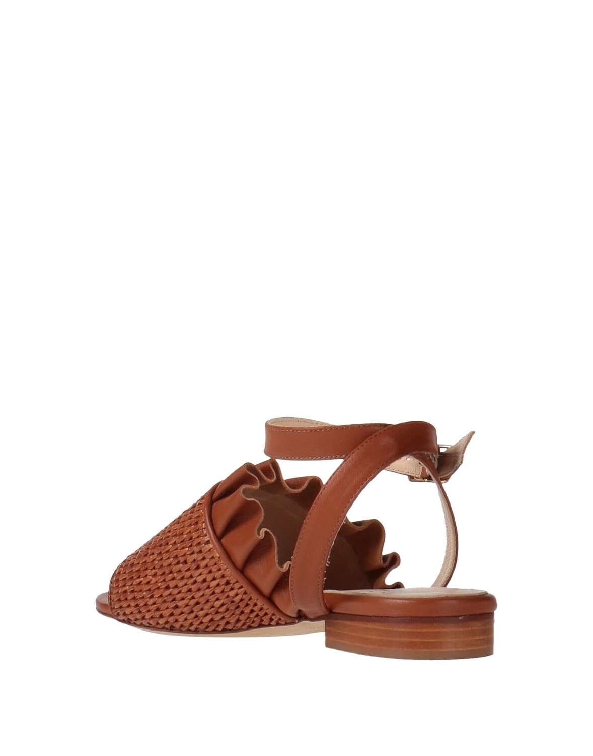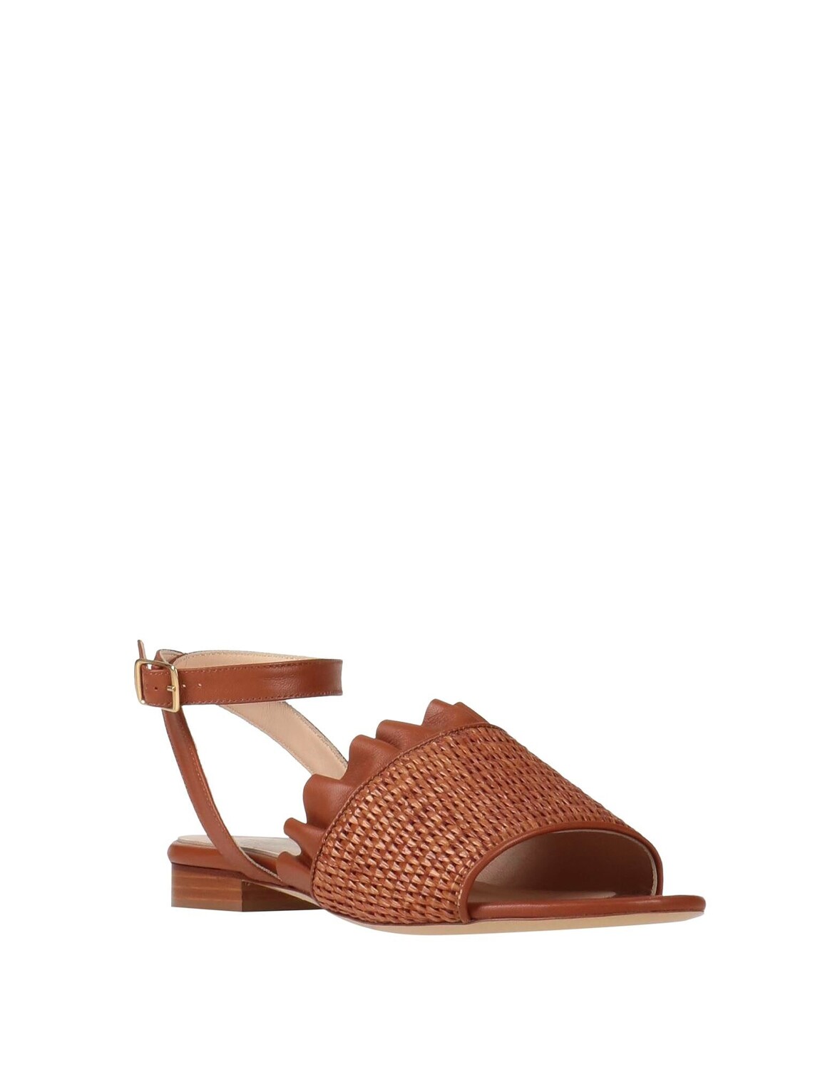 Кожа, рафия, оборки, одноцветное изделие, кожаная подкладка, ремешок на щиколотке с пряжкой, скругленный носок, без каблука, подошва из кожи/резины, содержит нетекстильные части животного происхождения, босоножки с ремешком на щиколотке