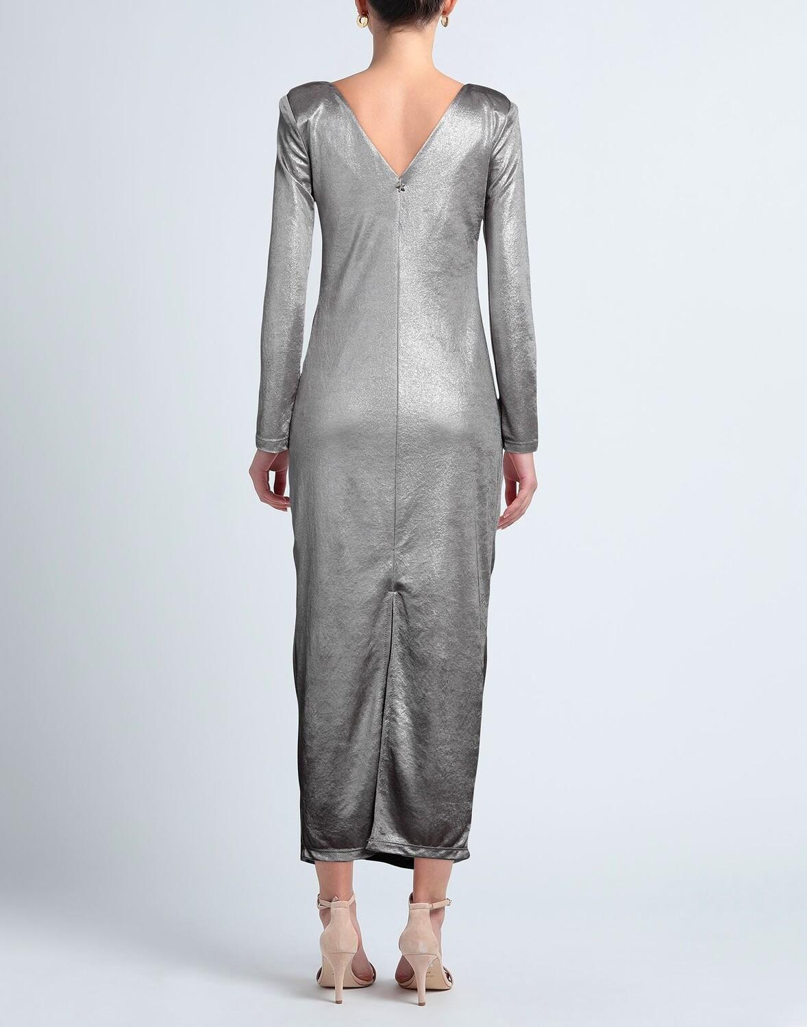 Джерси, ламе, оборки, одноцветное изделие, круглый воротник, длинные рукава, без подкладки, без карманов, фасон-карандаш
