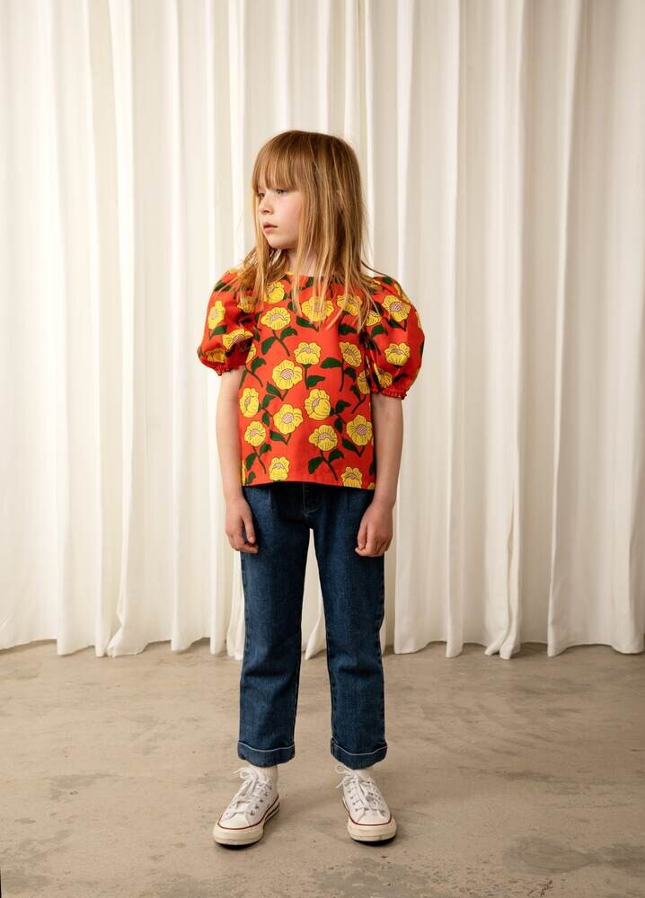 Хлопковая блузка с цветочным принтом Mini Rodini, оранжевый
