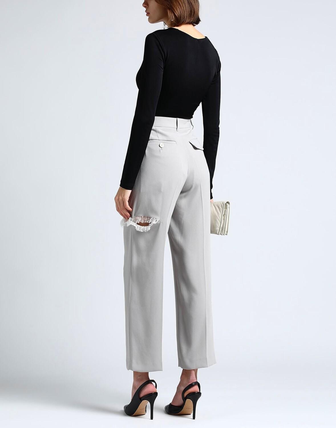 Кади, кружево, рваная ткань, контрастные аппликации, однотонное изделие с аппликациями, завышенная талия, прямые брючины, классический крой, застежка-молния, застежка на крючки, множество карманов, брюки