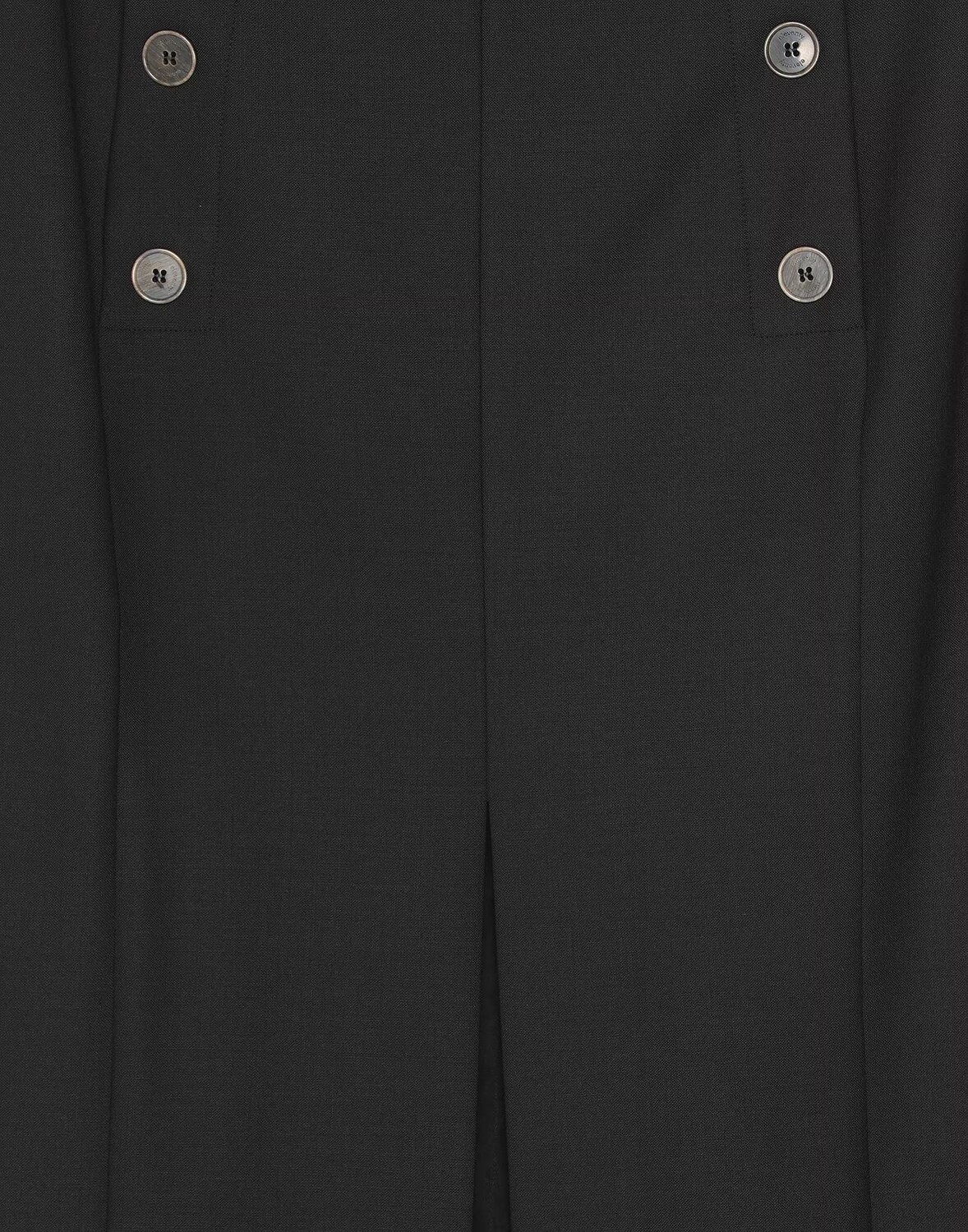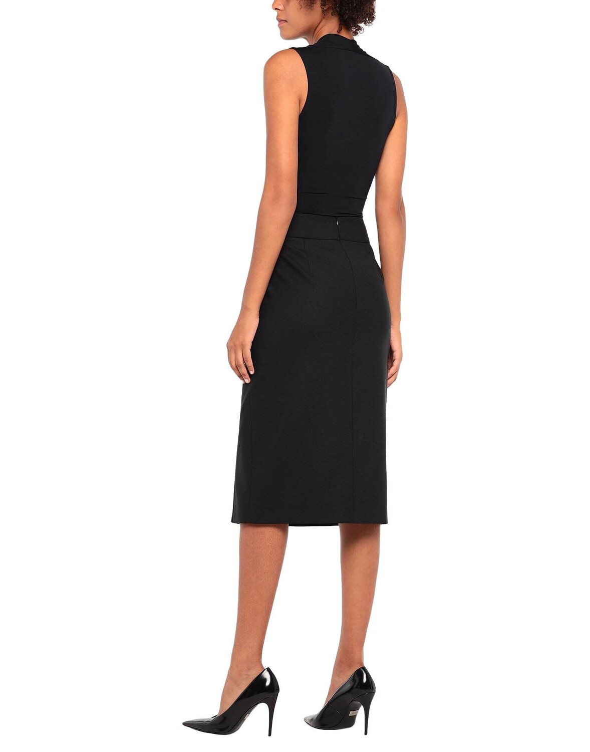 Холодная шерсть, контрастные аппликации, логотип бренда, однотонное изделие с аппликациями, множество карманов, застежка сзади, застежка-молния, на подкладке, разрез спереди, стрейч